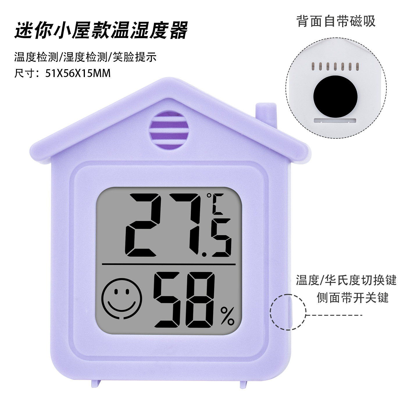 695 белый (с изоляцией); 695 черный (с изоляцией); 695 синий (с изоляцией); Стандартная версия влажного термометра, белый; Стандартная версия влажного термометра синего цвета; Стандартная версия влажного термометра, черный; Модернизированная модель [с переключателем + преобразованием китайских/Цельсия + магнитным всасыванием]; 688 белый; 699 белый; Солнечный мини-термогигрометр; 695 белый (без изоляции); 695 черный (без изоляции); Маленький белый дом [с выключателем + конверсия в градусы Цельсия + магнитное крепление]; Маленький домик фиолетового цвета [с выключателем + переключением между градусами Фаренгейта и Цельсия + магнитное крепление]; Маленький домик синий [с выключателем + переключением на градусы Цельсия + магнитным креплением]; Маленький домик черный [с выключателем + конверсия в градусы Цельсия + магнитное крепление]; Маленький домик, кофейный цвет [с выключателем + конверсия в градусы Цельсия + магнитное крепление]