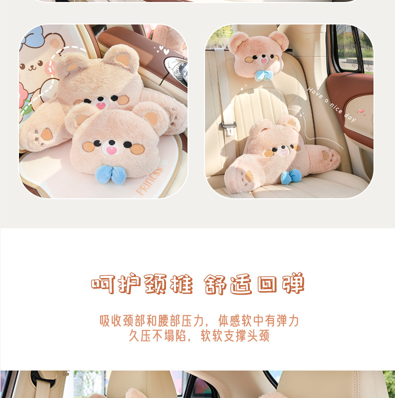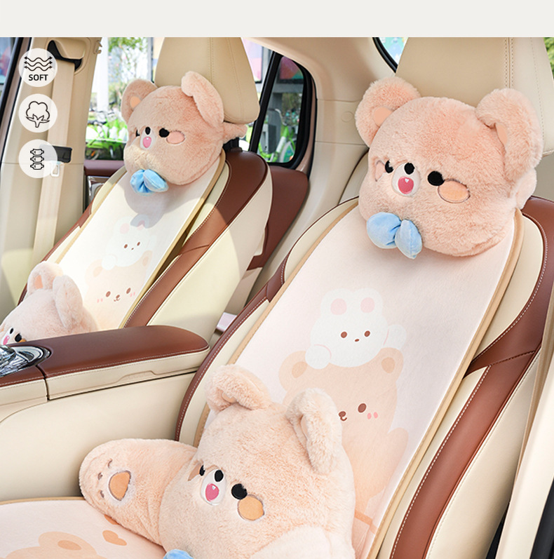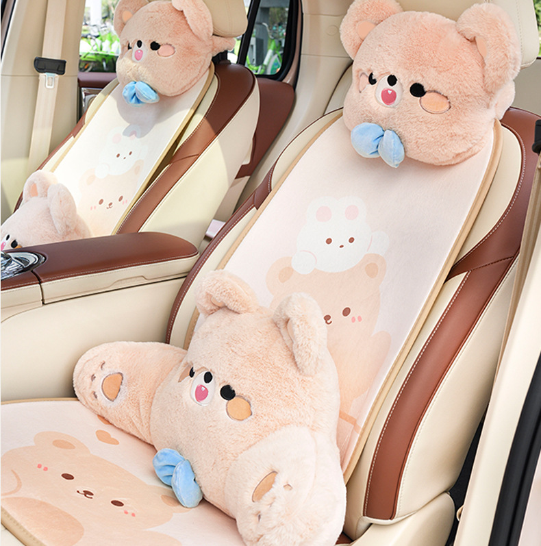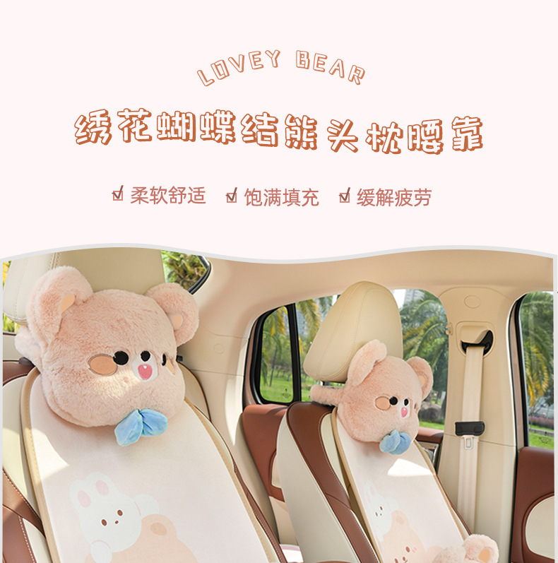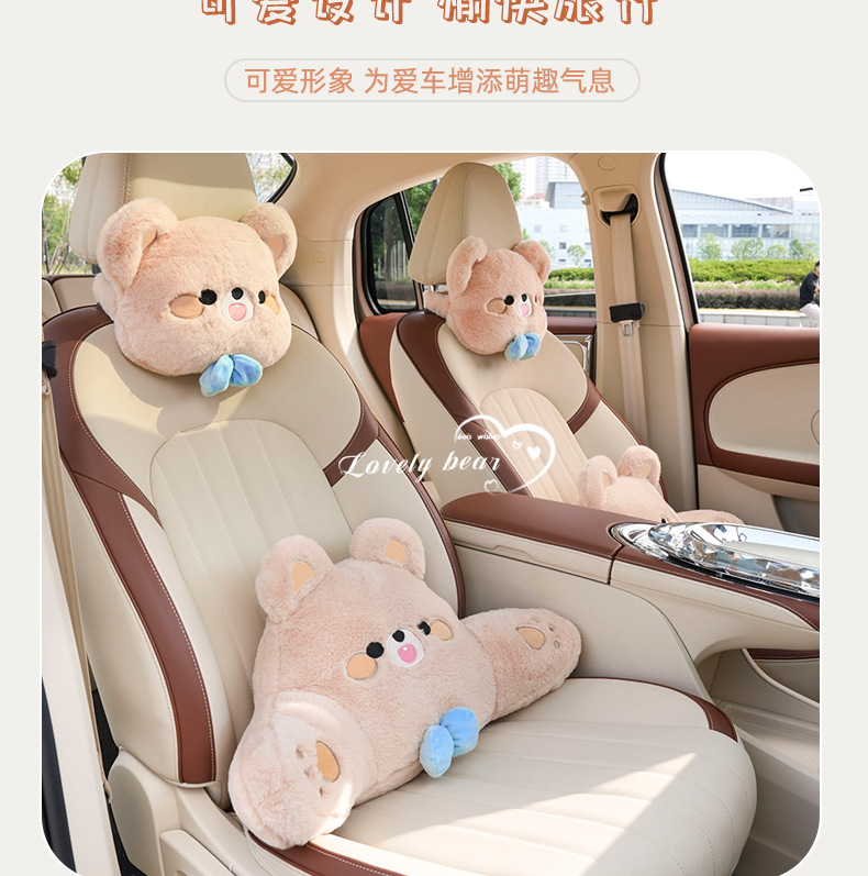 Подушка для шеи в виде мультяшного автомобиля, подушка для поясницы в виде медведя, универсальная автомобильная подушка для всех сезонов, аксессуары для интерьера автомобиля