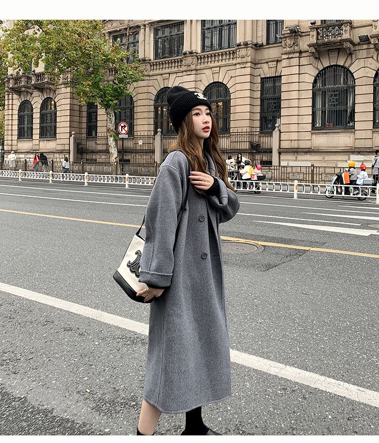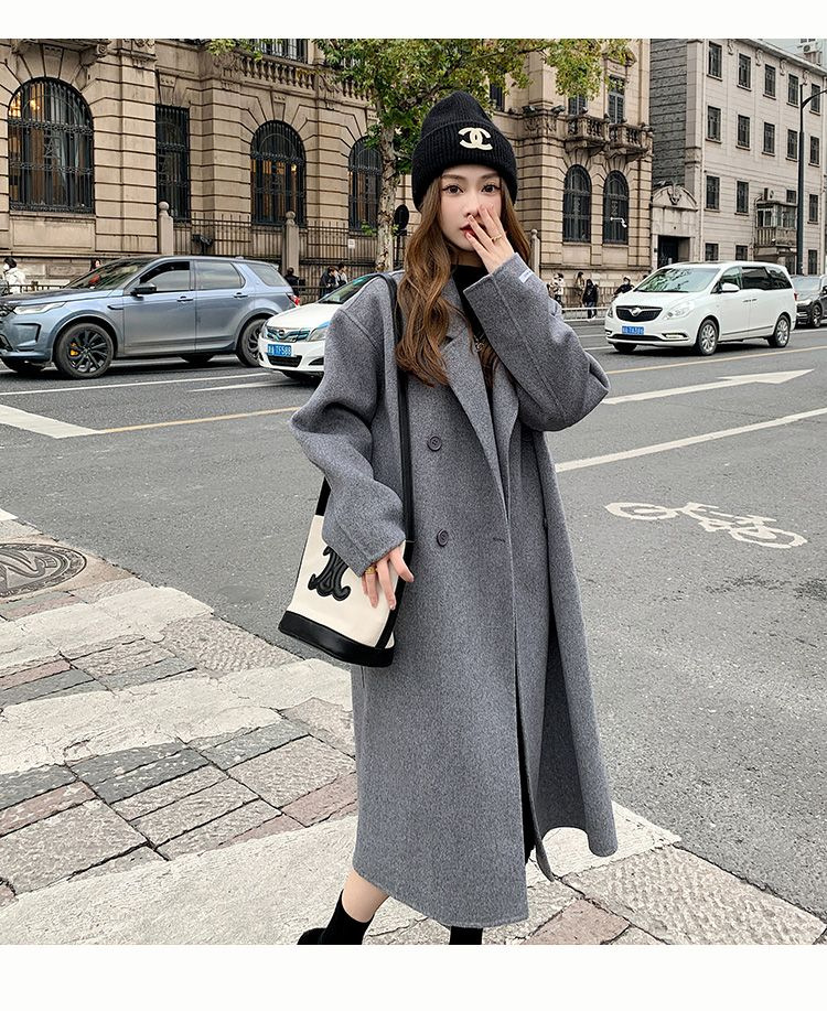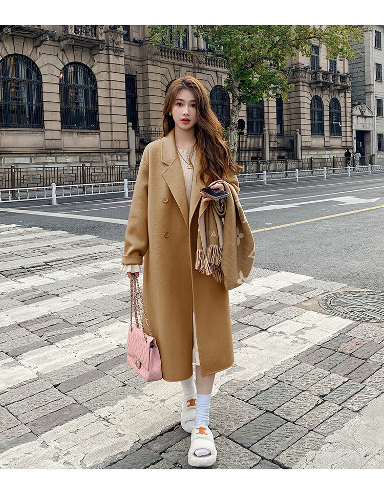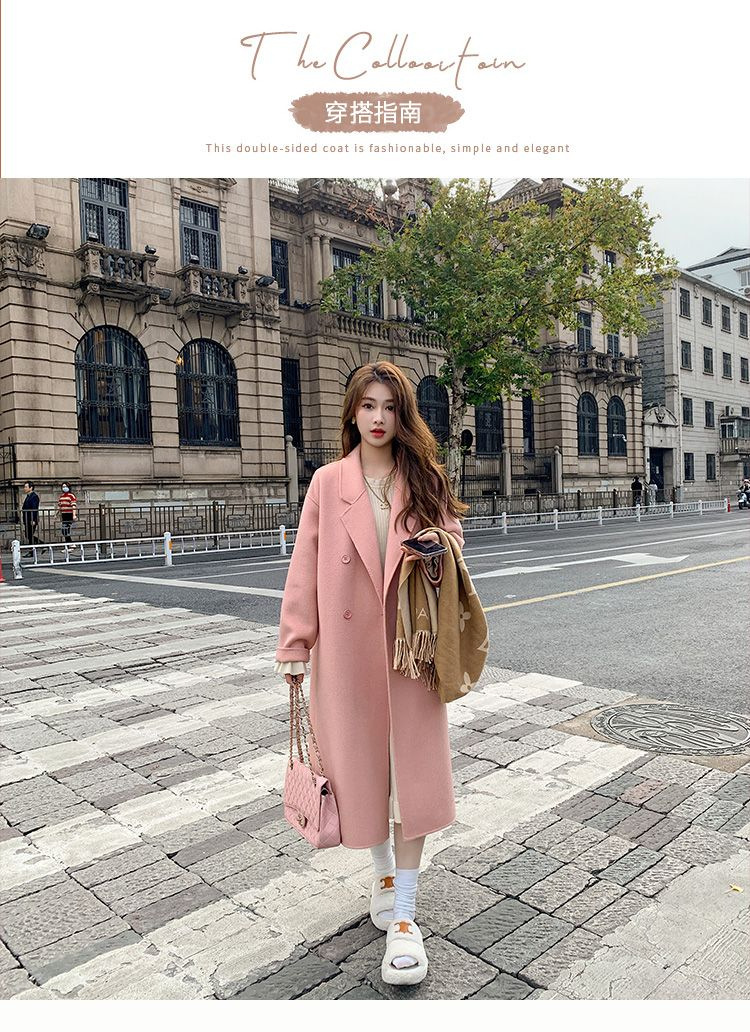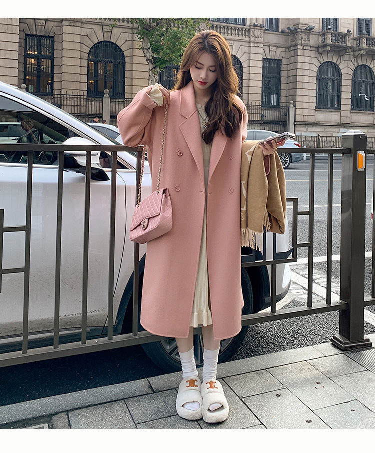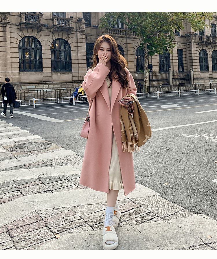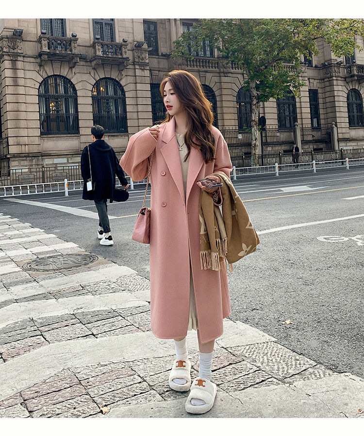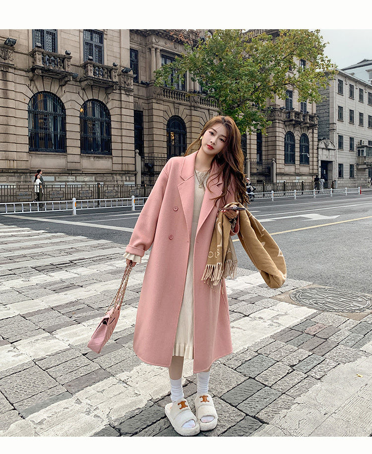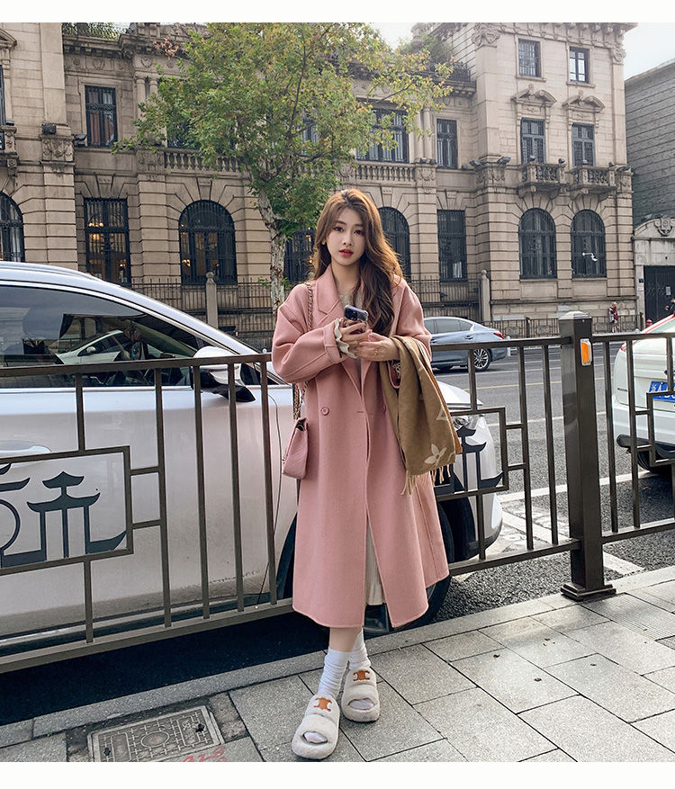 Розовое шерстяное пальто для женщин 2023 осень-зима Новое свободное шерстяное пальто средней длины в Корейском стиле в стиле Хепберн