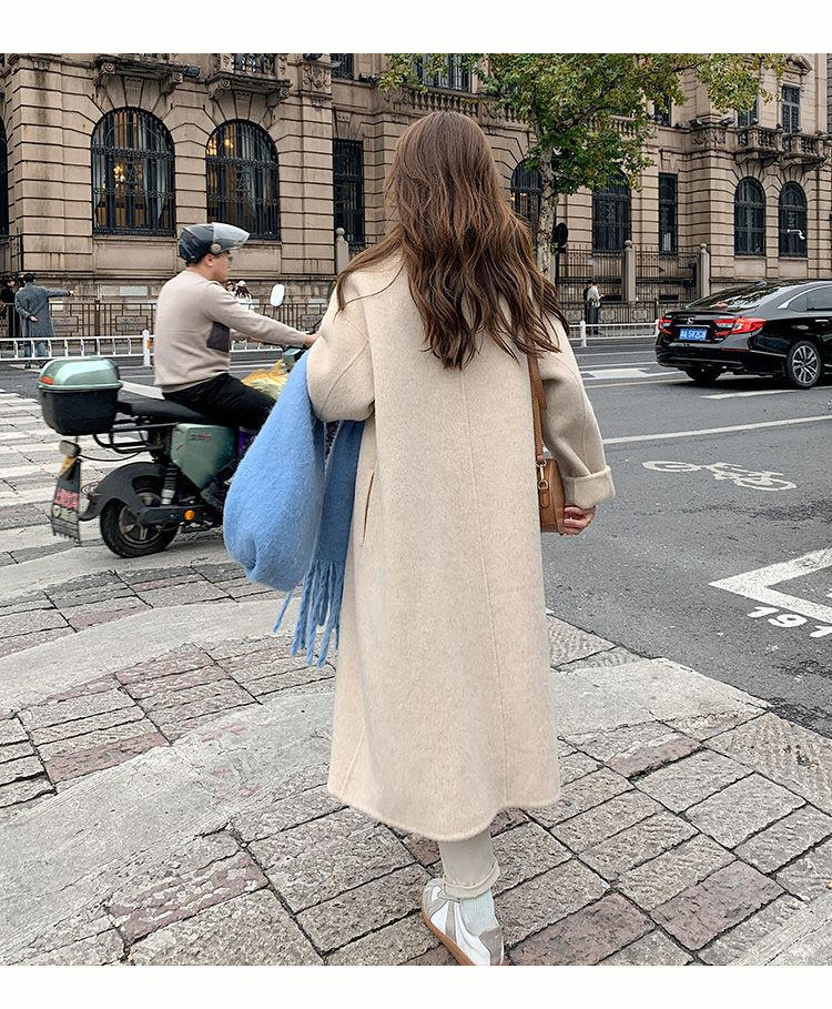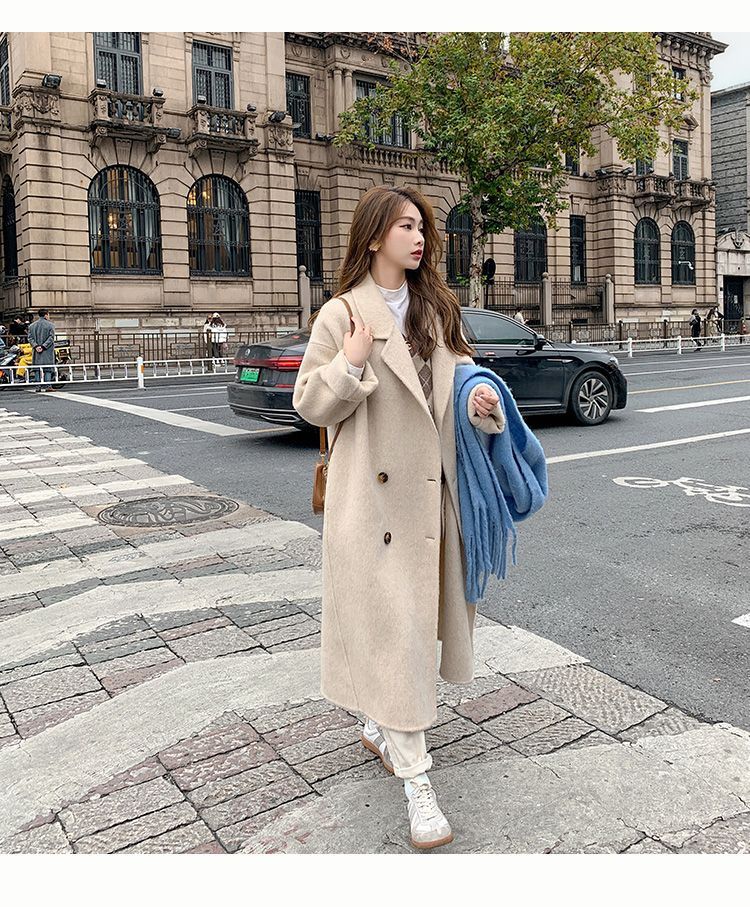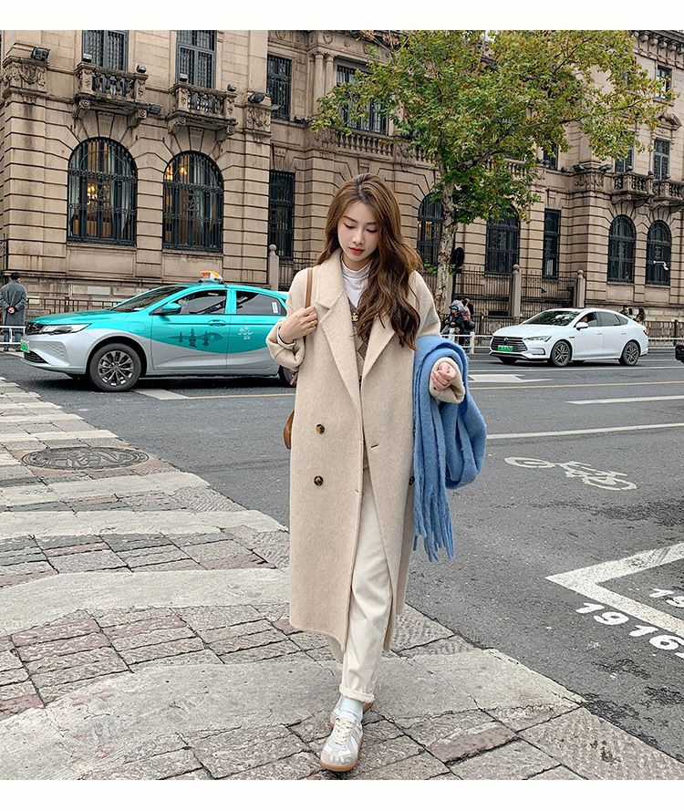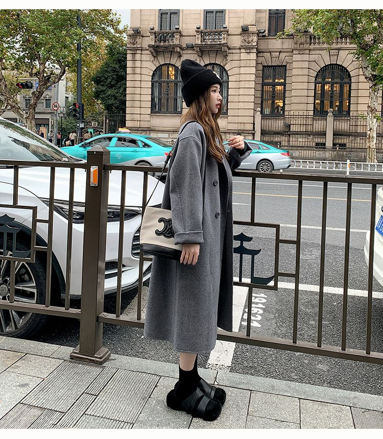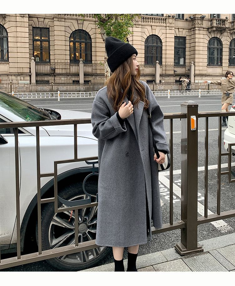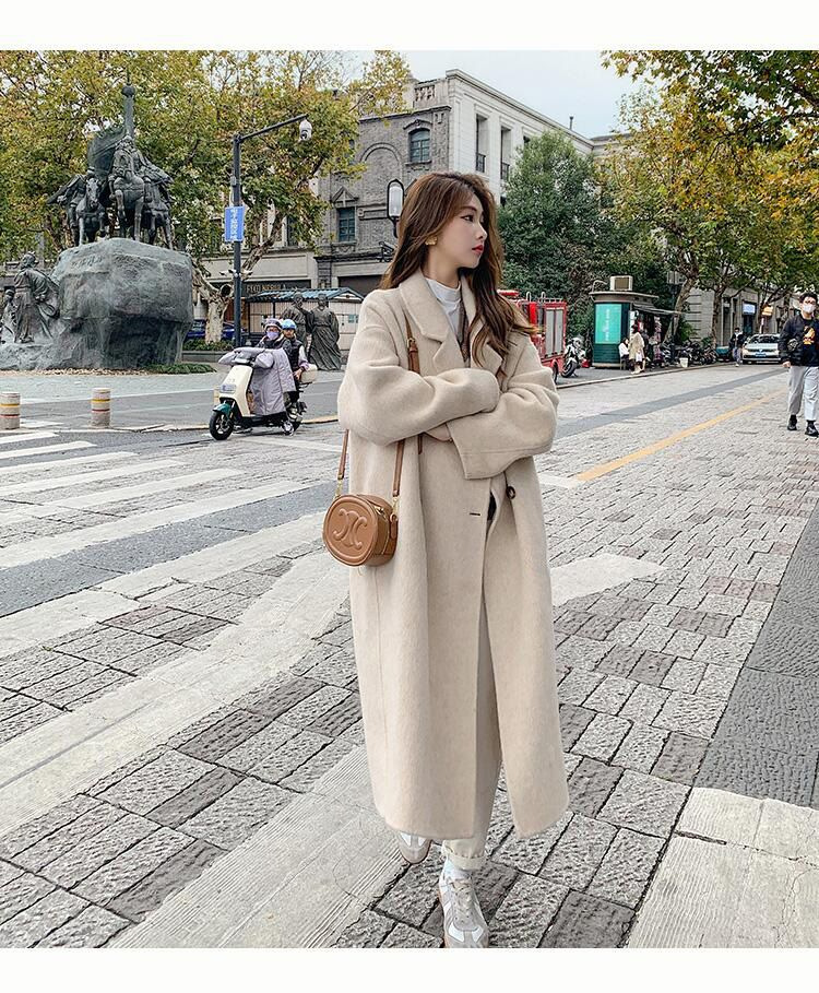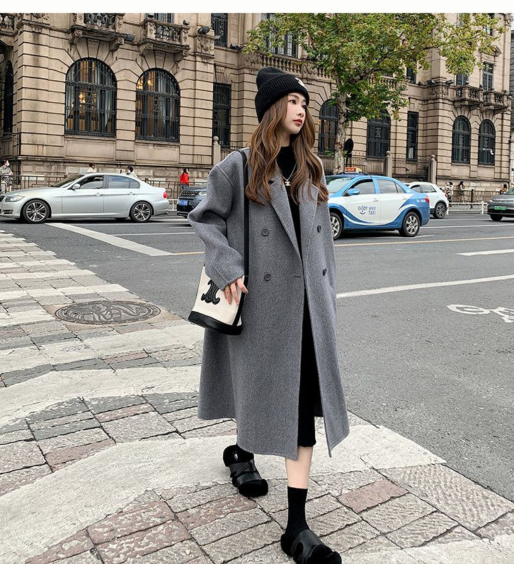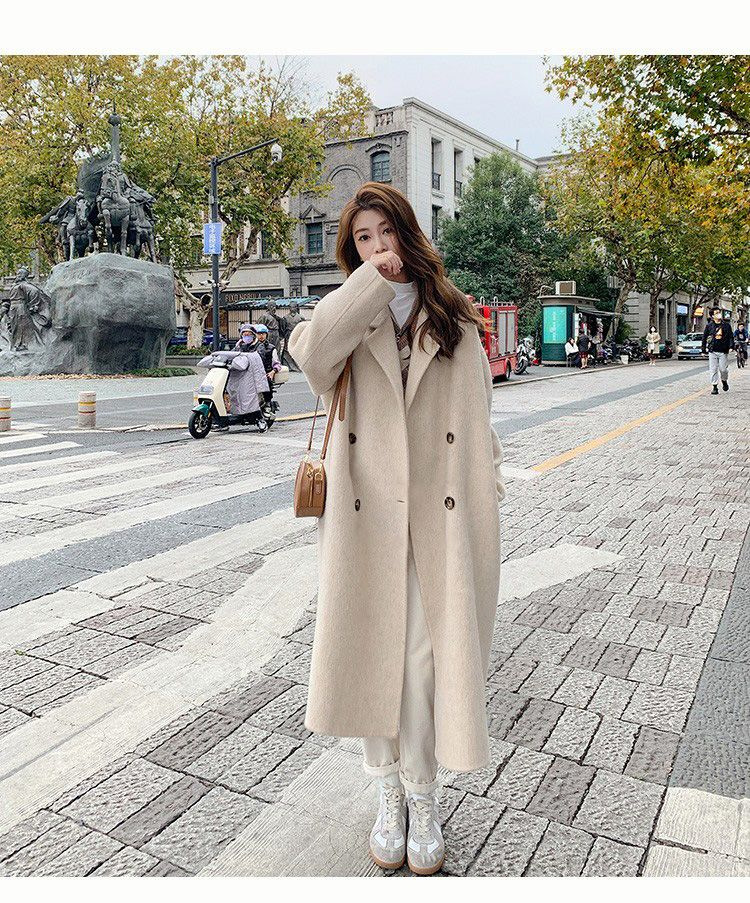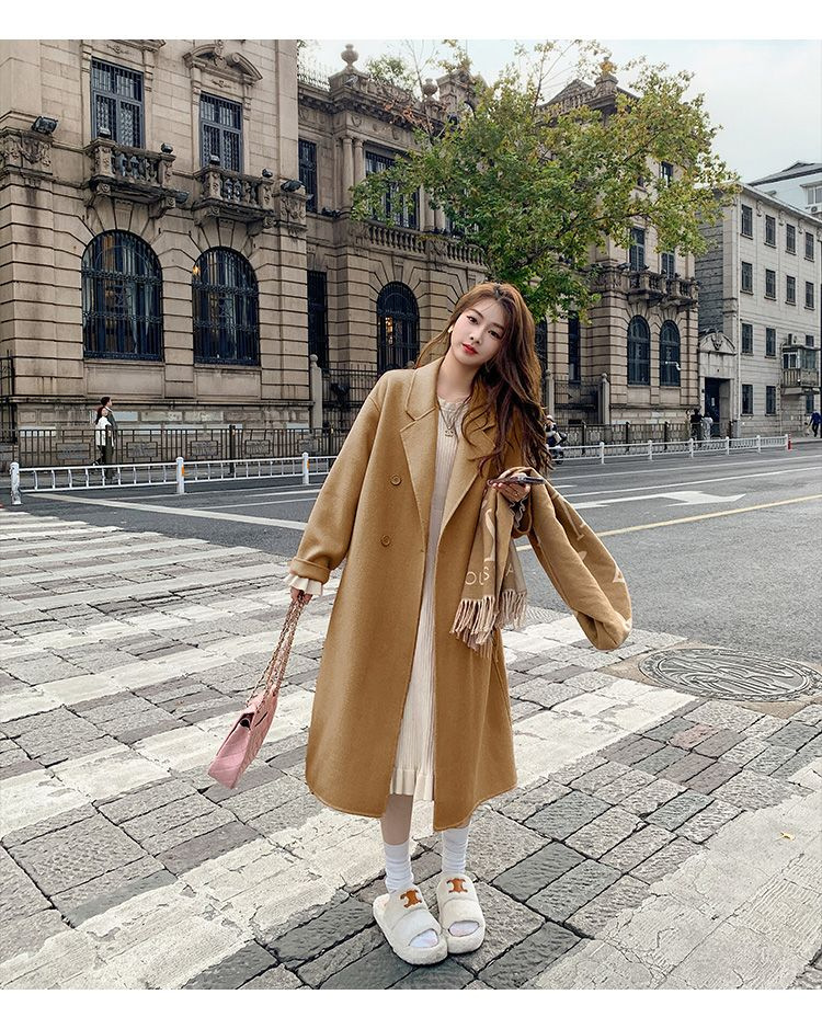 Розовое шерстяное пальто для женщин 2023 осень-зима Новое свободное шерстяное пальто средней длины в Корейском стиле в стиле Хепберн