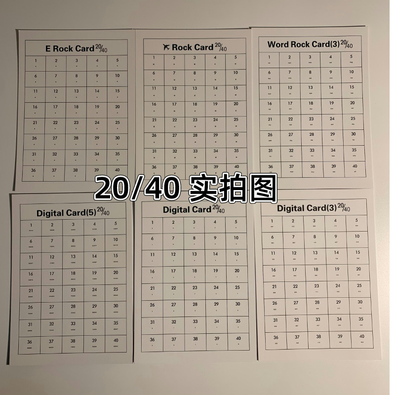 Карта № 1 20/50E; № 2 20/50; № 3 20/50 Зодиак; № 4 20/50 Три буквы; № 5 20/50 три цифры; № 6 20/50 один номер; № 7 20/50 однобуквенные буквы; № 8 20/50 пять цифр; Карта № 9 20/40E; Самолет № 10 20/40; № 11 20/40 три буквы; № 12 20/40 три цифры; № 13 20/40 пять цифр; 14-й номер 20/40; № 15 20/30E; № 16 20/30; № 17 20/30 однобуквенные буквы; № 18 20/30 Три буквы; № 19 20/30 пять букв; № 20 20/30 одиночные цифры; № 21 20/30 три цифры; № 22 20/30 пять цифр; № 23 20/30 Зодиак; № 24 20/30 автомобиль; № 25 20/30 графические знаки; № 26 20/30 Фрукты Животные; № 27 20/30C; № 28 20/20E; № 29 20/20C; № 30 20/20 однобуквенные буквы; № 31 20/20 одиночные цифры; Переверните инструкцию по съемке; 1 карта 2 стороны лицевой 20/50 три цифры и 20/50 три буквы; 1 карта 2 стороны лицевой 20/40 три цифры и 20/40 три буквы; 1 карта 2 стороны фронтальной 20/30 одиночных цифр и 20/30 однобуквенных букв; 1 карта 2 стороны лицевой 20/30 три цифры и 20/30 три буквы; 1 карта 2 стороны лицевой 20/30 пять цифр и 20/30 пять букв; 1 карта с 2 лицевой стороной 20/40 C и 20/30 C; 1 карточка 2 лицевой стороны 20/100 E против 20/50 E; 1 карта 2 стороны фронтальная 20/40 графика с 20/30 графикой