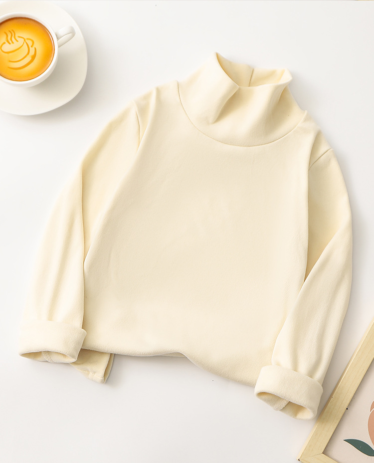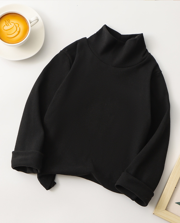 Детская футболка с длинными рукавами, с воротником до локтя, Новинка осени и зимы, однотонная Универсальная футболка в Корейском стиле, базовая футболка для мужчин и женщин среднего и большого возраста