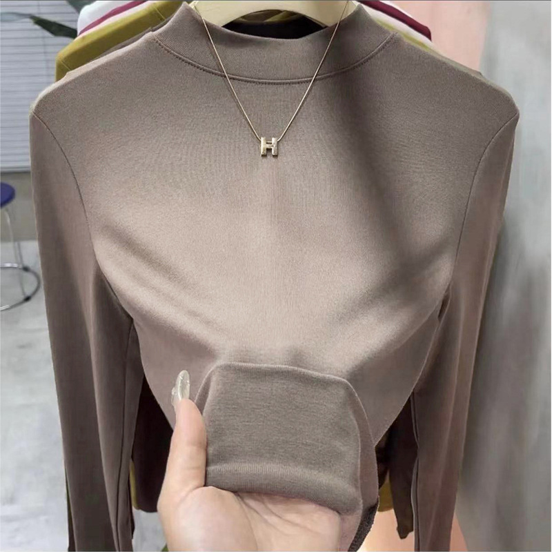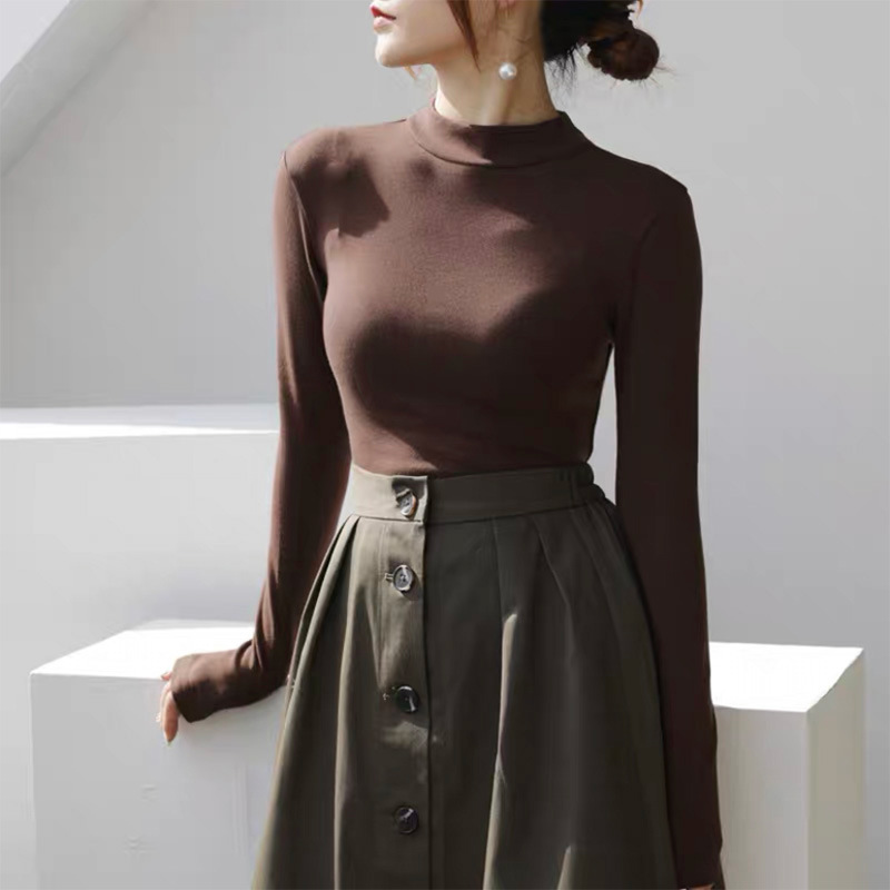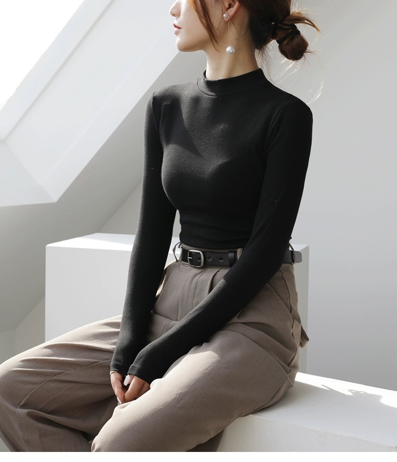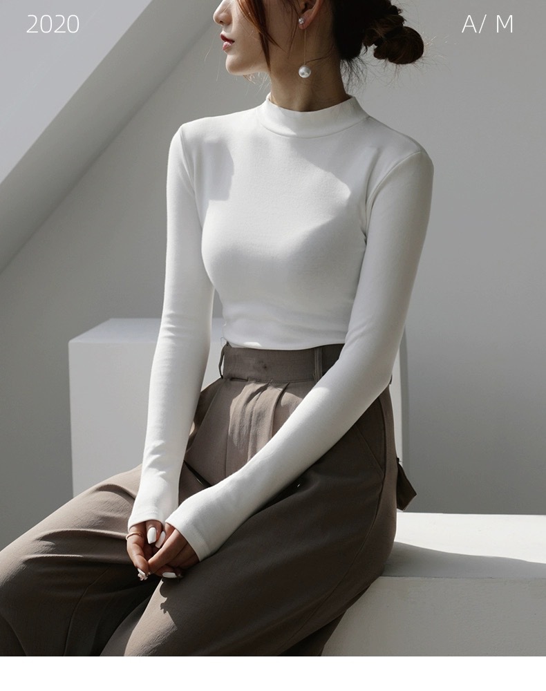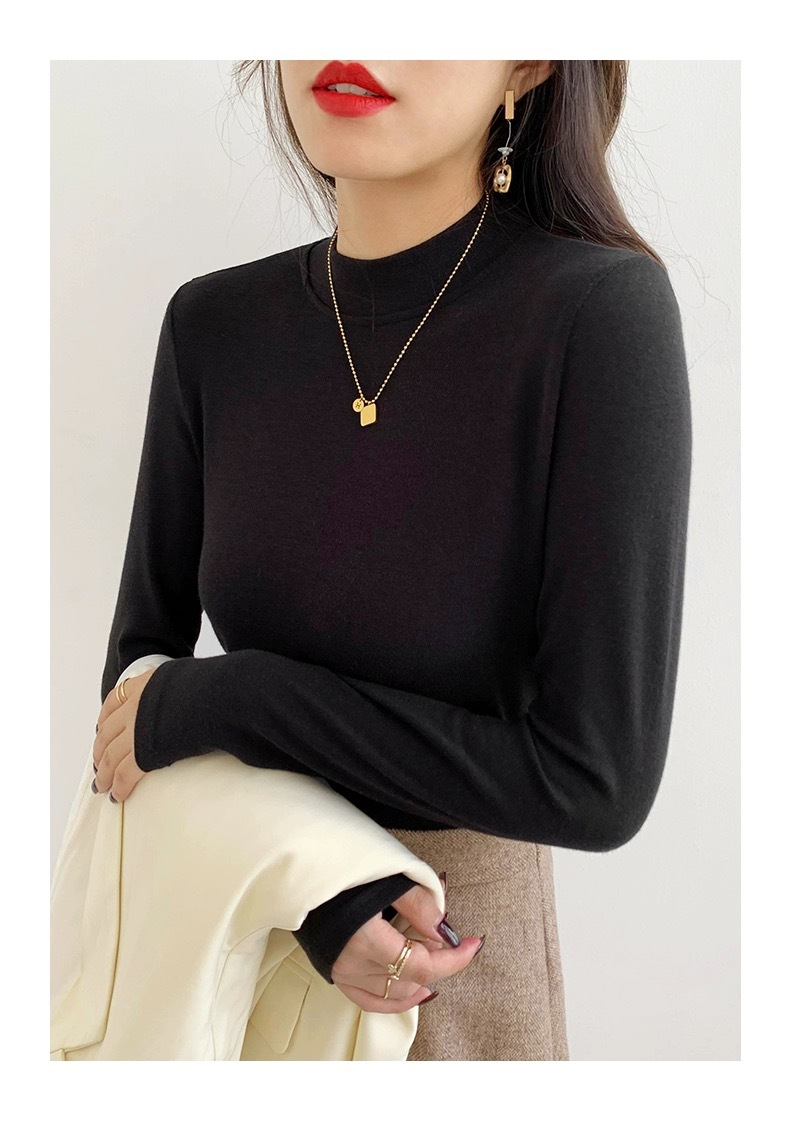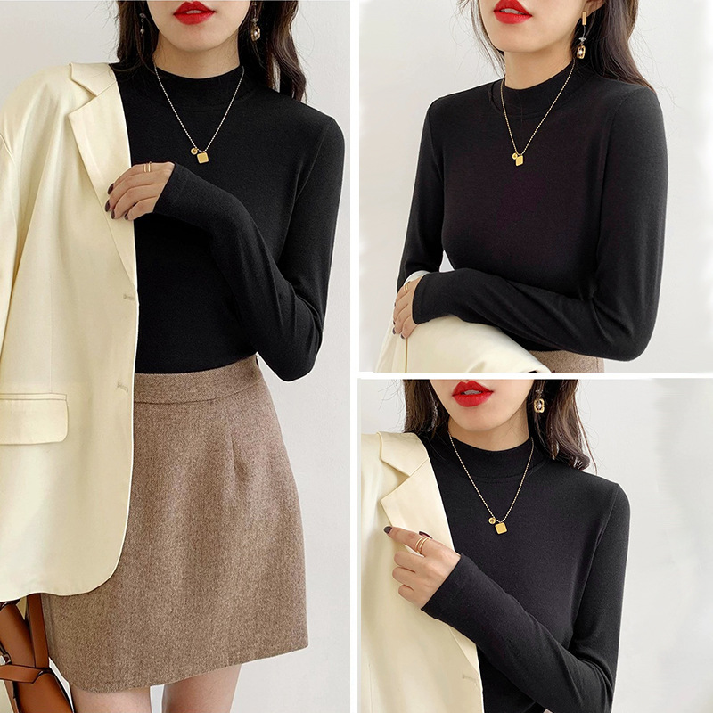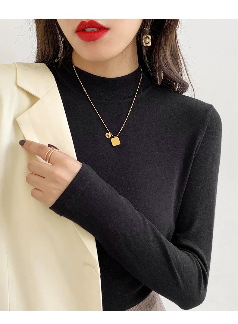 Новый однотонный полувысокий воротник с модельским нижним свитером