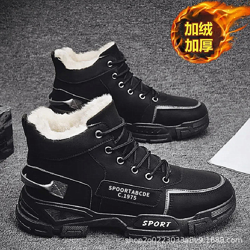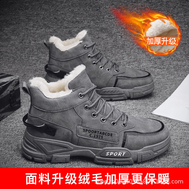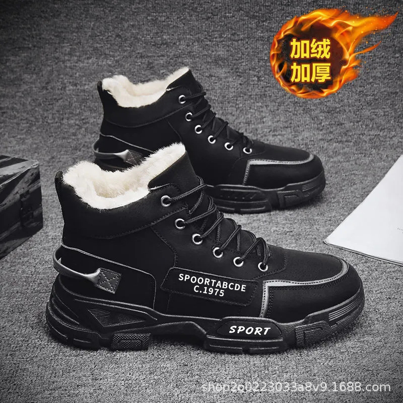 Зимние рабочие ботинки мужские высокие, универсальные повседневные ботинки-мартинсы, утепленные флисом, теплые хлопковые сапоги