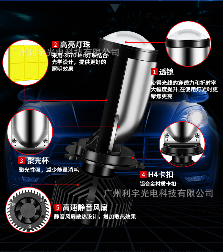 Новый автомобиль Y9/Y6D поставляется с линзой, светодиодная фара, супер яркий прожектор H4, автомобильный свет «рыбий глаз», мотоцикл, дальний и ближний свет