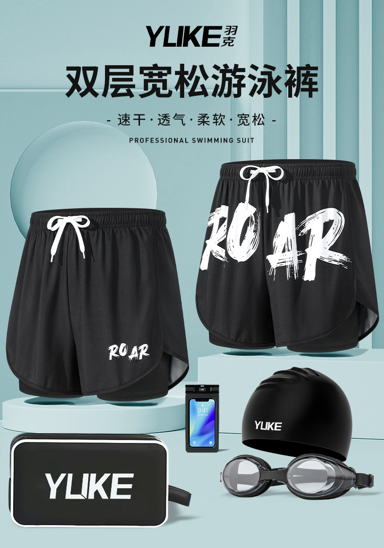 Плавки для взрослых, новые профессиональные быстросохнущие двухслойные свободные двухслойные купальные костюмы больших размеров с защитой от смущения, оптом