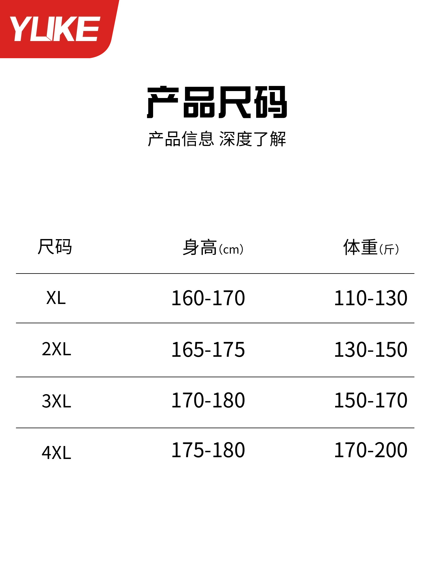 L [Рекомендуемый вес 90-105 кг]; XL [Рекомендуемый вес 105-125 кг]; 2XL [Рекомендуемый вес 125-145 кг]; 3XL [Рекомендуемый вес 145-165 кг]; 4XL [Рекомендуемый вес 165-185 кг]; 5XL [Рекомендуемый вес 185-200 кг]