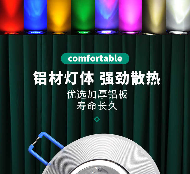 Цветной прожектор, светодиодный красочный свет, красный свет, синий свет, зеленый свет, фиолетовый свет, 3w5w, встроенный KTV, красочный потолочный светильник с затемнением