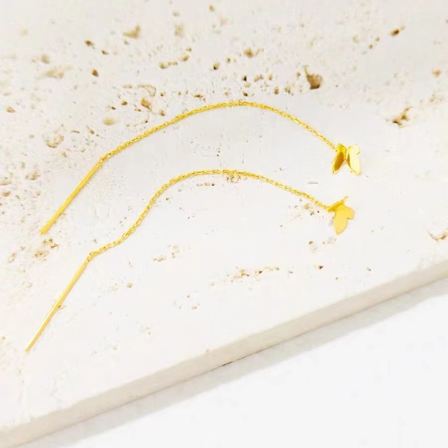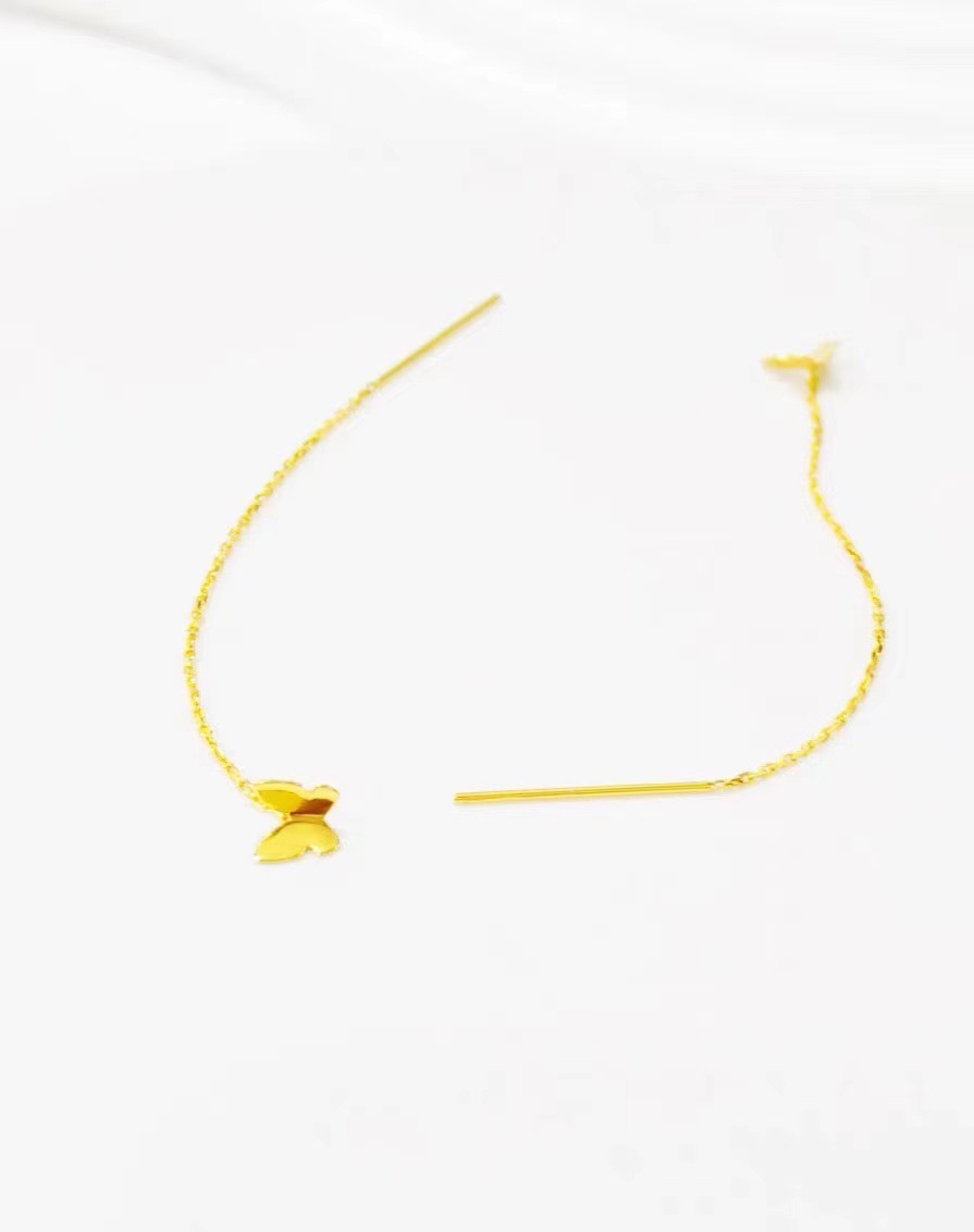 Серьги-бабочки из золота 18 карат (AU750), простые и элегантные, ручной работы, подарок для девушки на китайский День святого Валентина