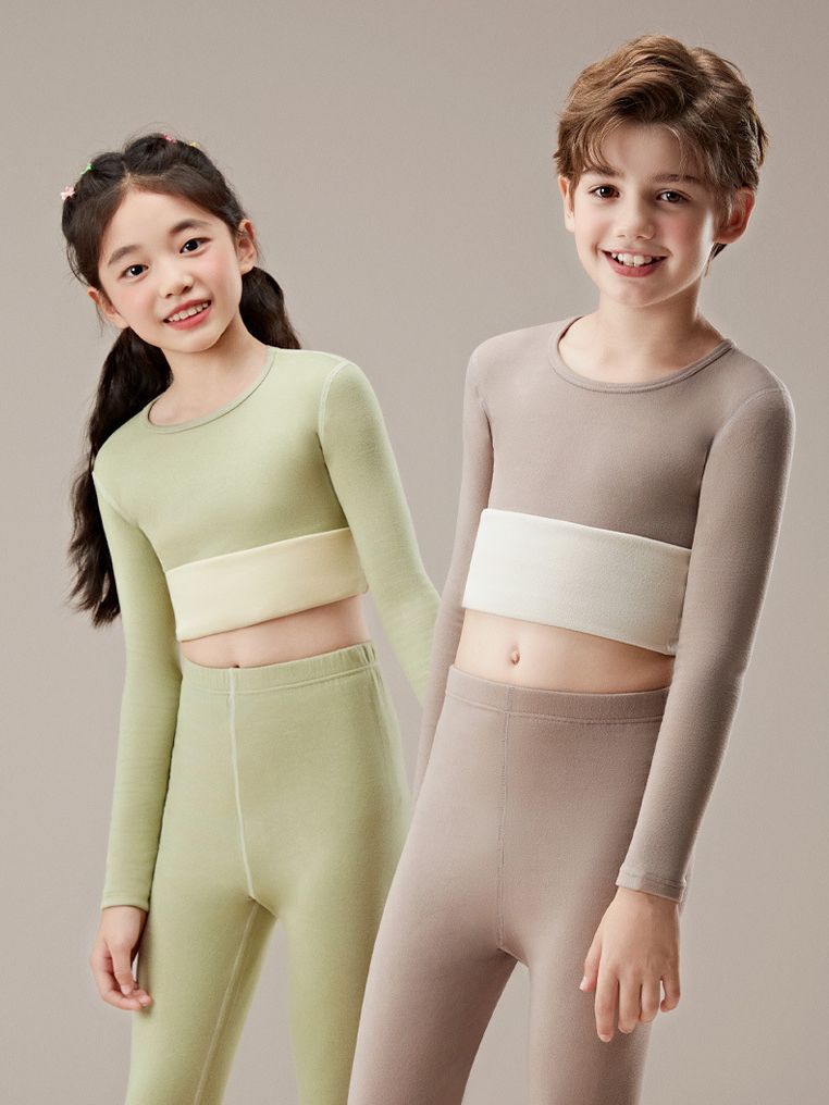 Осенне-зимнее мужское и женское детское бархатное термобелье, Детский костюм, осенняя одежда, осенние брюки, средние и большие детские нижние, бесшовная внутренняя одежда, одежда на хлопковой подкладке
