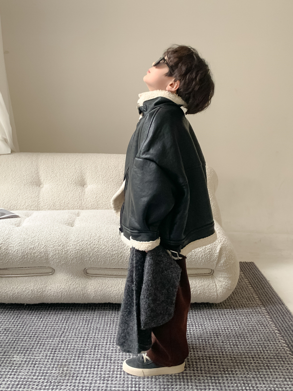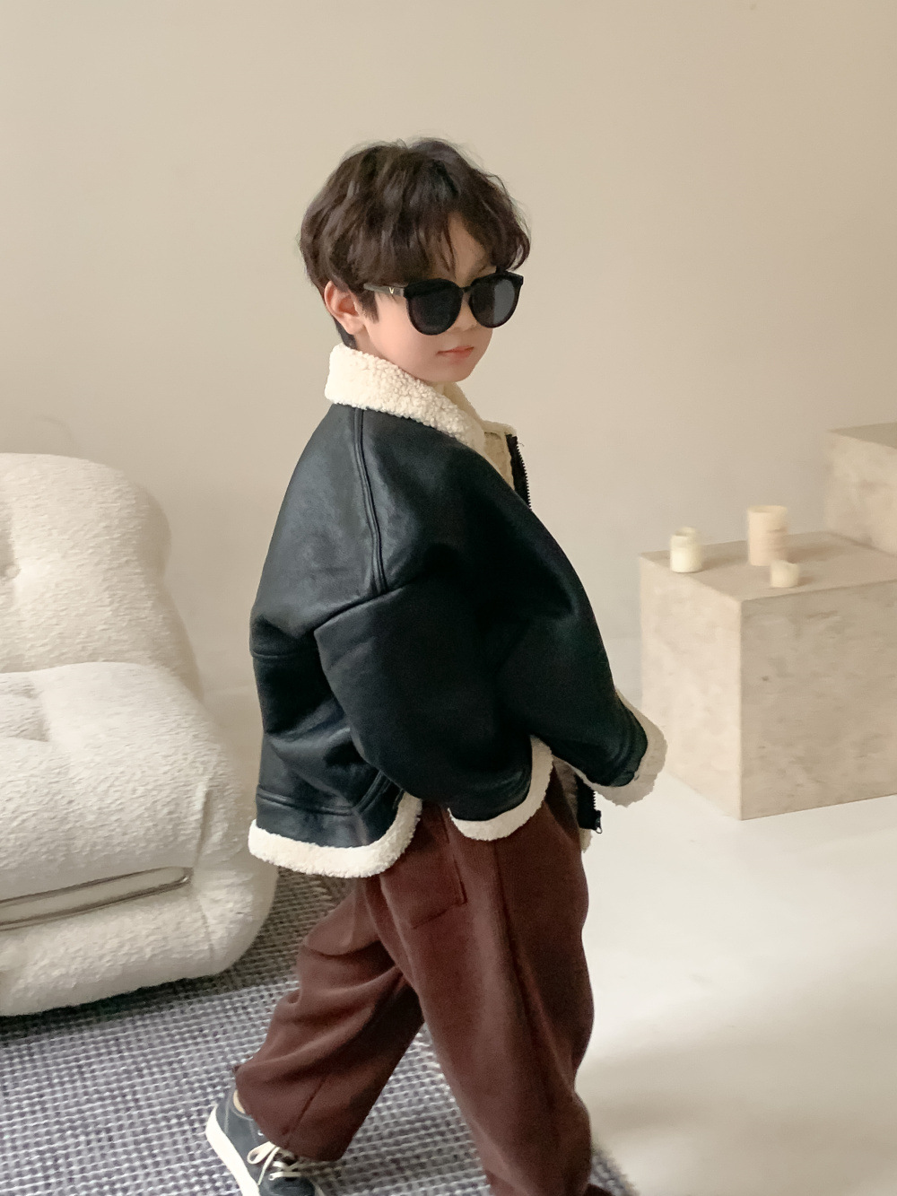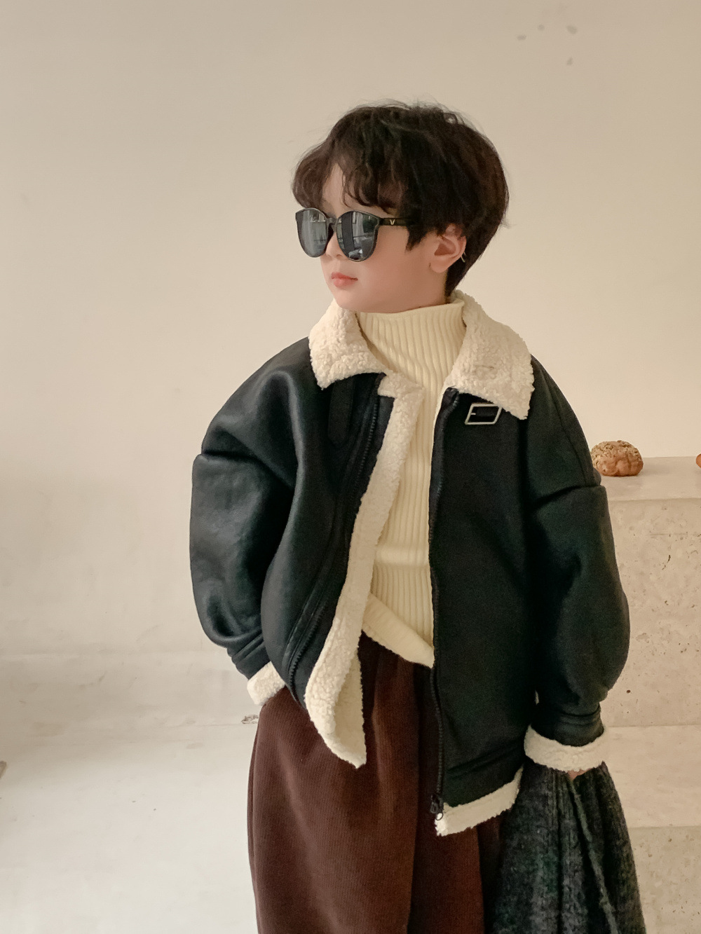 Детская зимняя куртка 2025 для мальчиков в корейском стиле, повседневная кожаная куртка с меховым воротником, утепленная кожаная куртка на молнии для детей