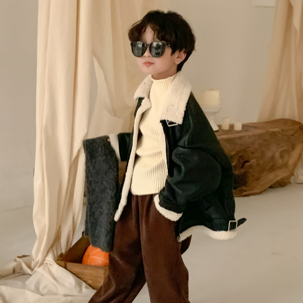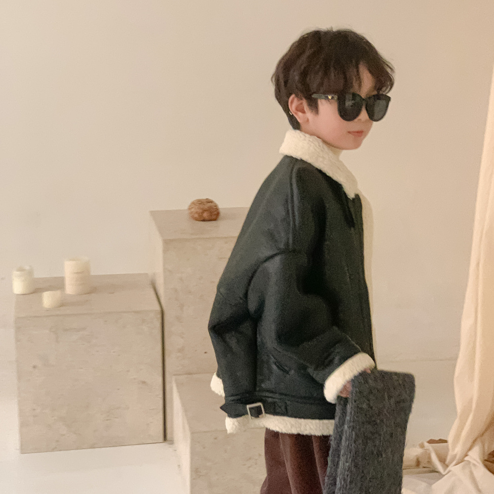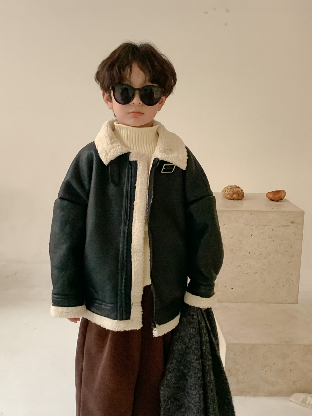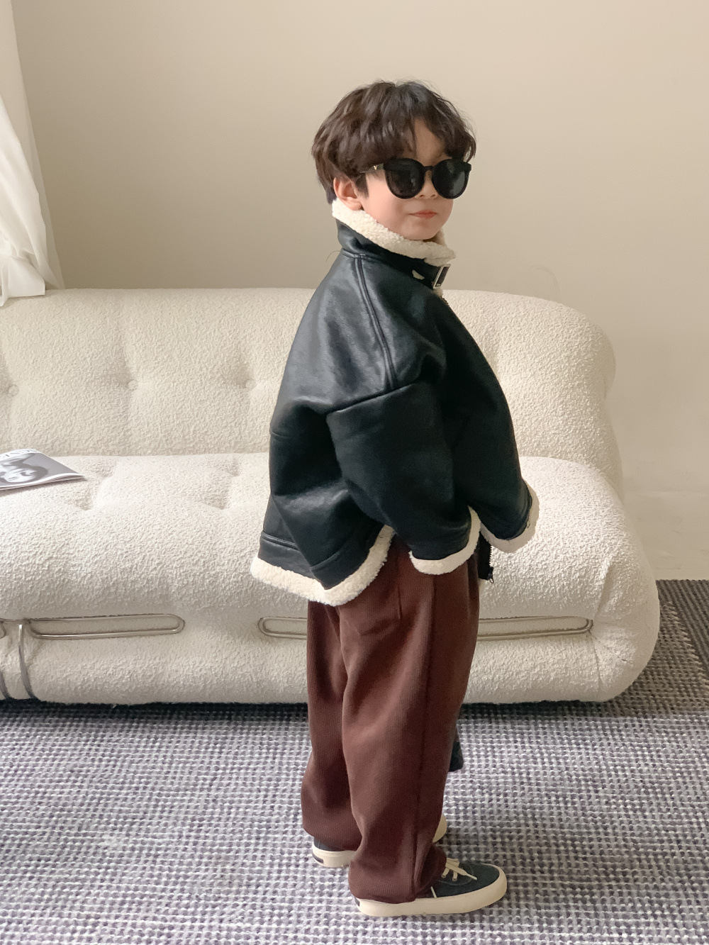Детская зимняя куртка 2025 для мальчиков в корейском стиле, повседневная кожаная куртка с меховым воротником, утепленная кожаная куртка на молнии для детей