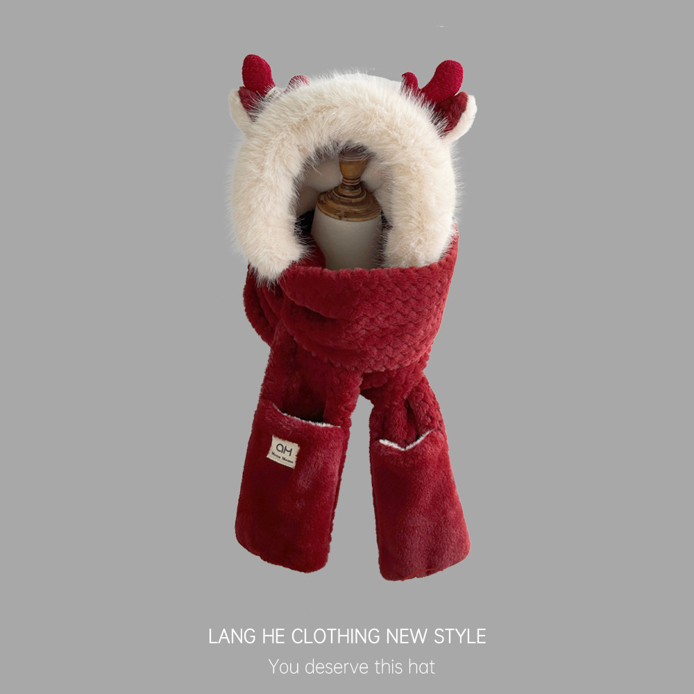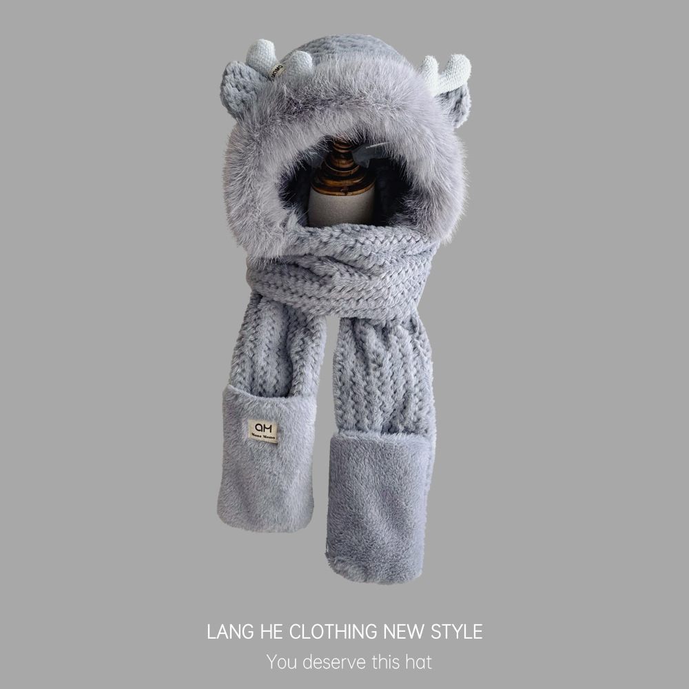 Письмо рога перчатки плюшевый шарф шапка интегрированная Корейская Милая осенне-зимняя ветрозащитная теплая утолщенная шапка с наушниками