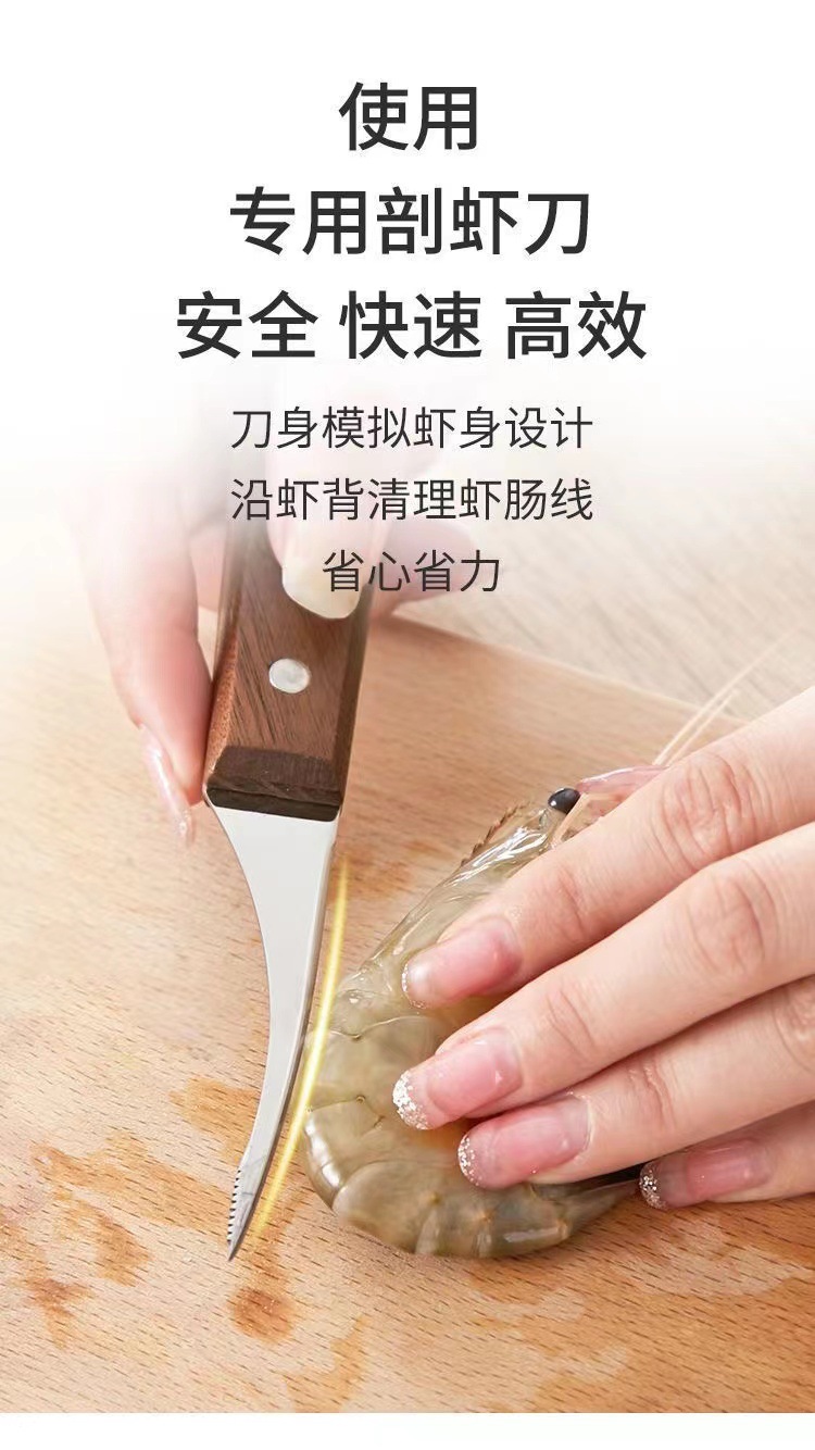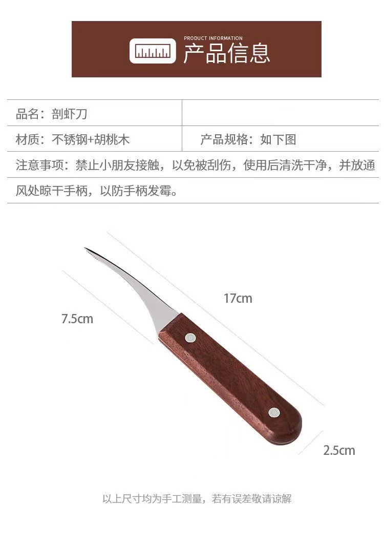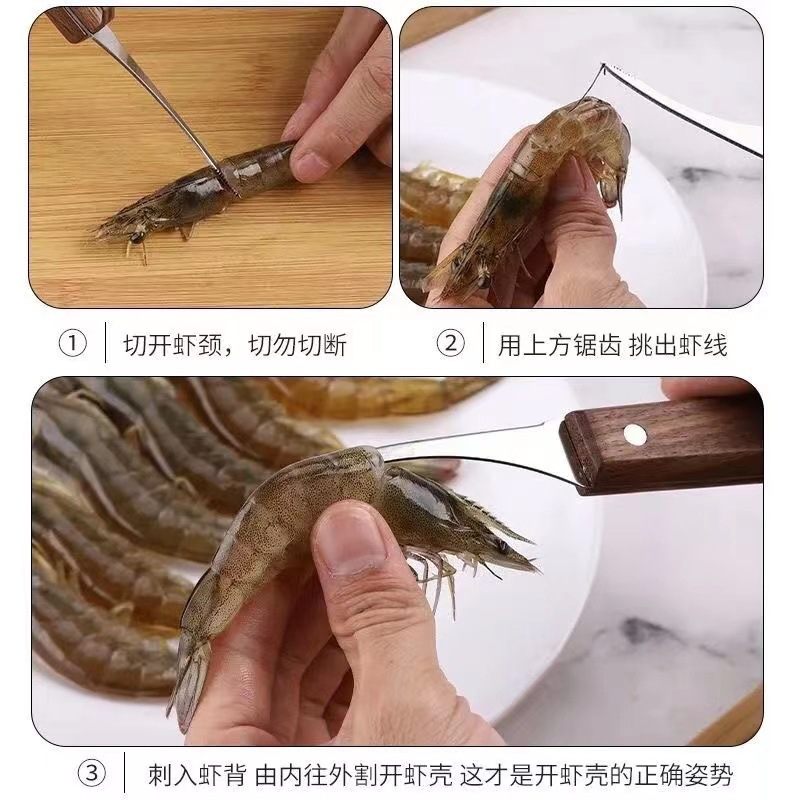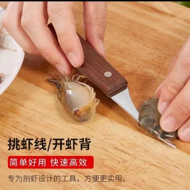 1 нож для креветок с деревянной ручкой; Деревянная ручка креветок нож 2; 1 двухголовый нож для креветок