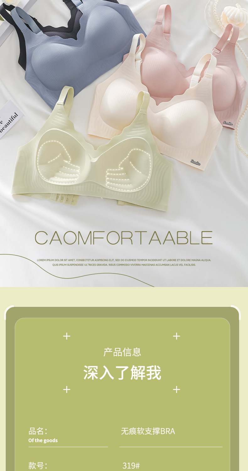Осень 2023 Удобное бесследное нижнее белье с фиксированной чашкой для ладони Женский бюстгальтер пуш-ап с мягкой поддержкой для внешней торговли