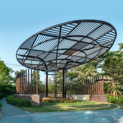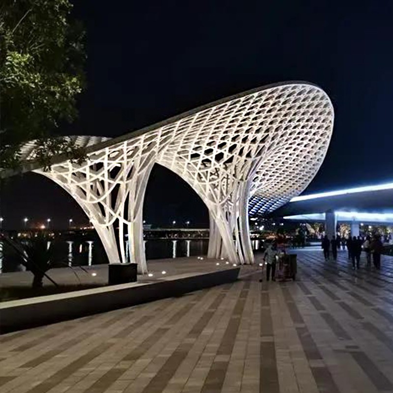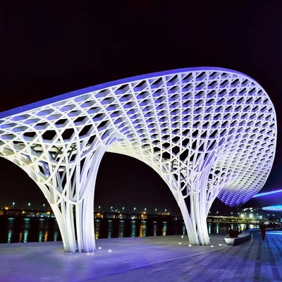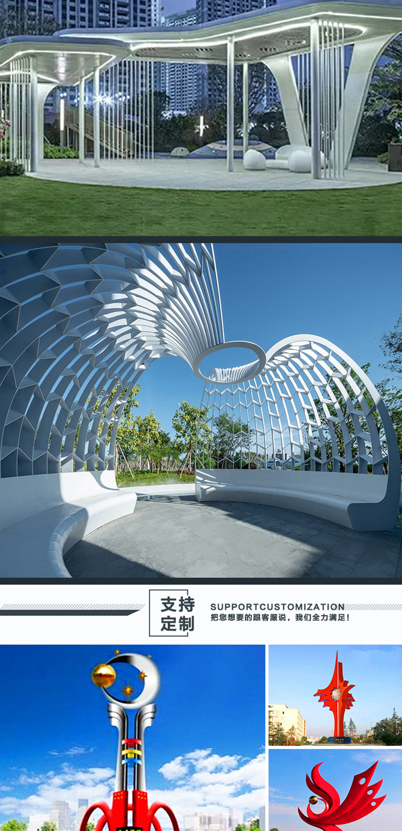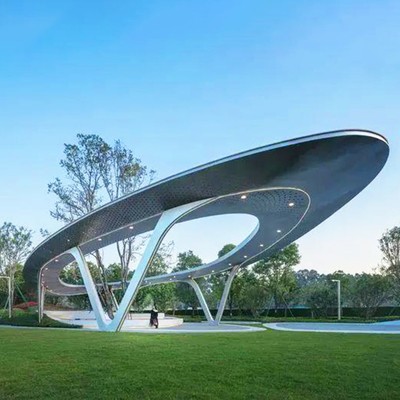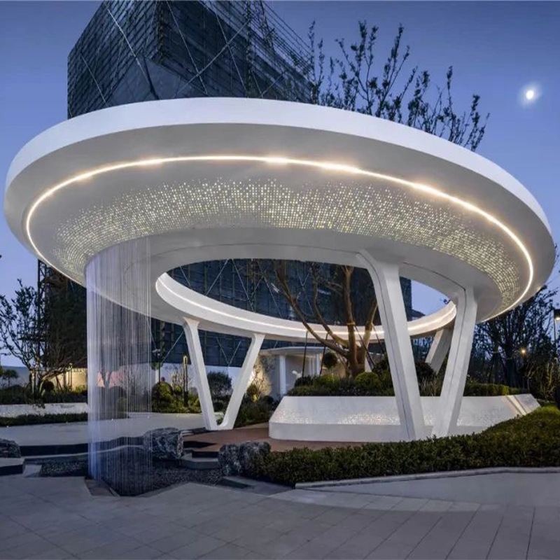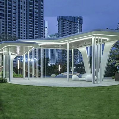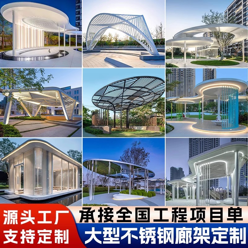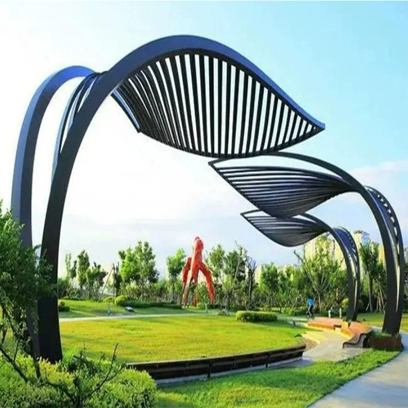 Пергола из нержавеющей стали, большая парковая беседка, архитектурная металлическая конструкция из стали, нерегулярная скульптура из стекловолокна