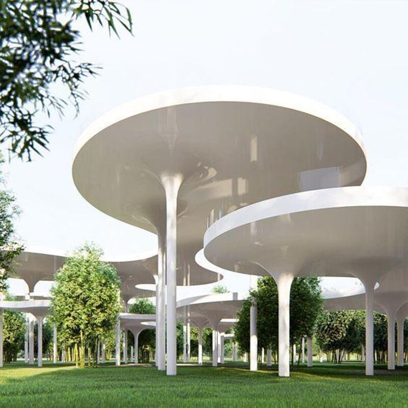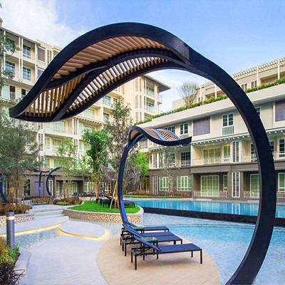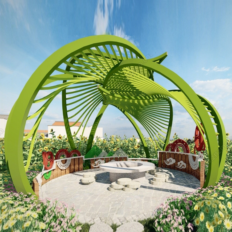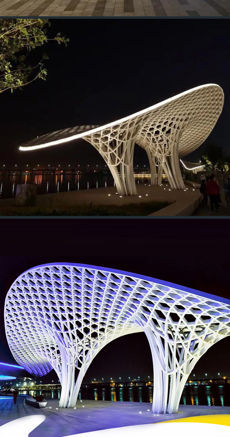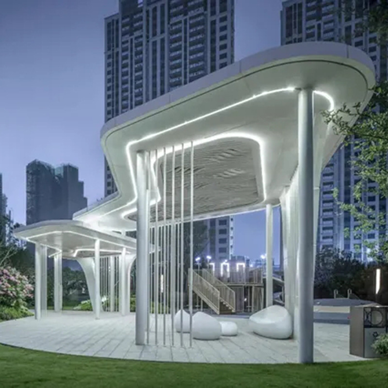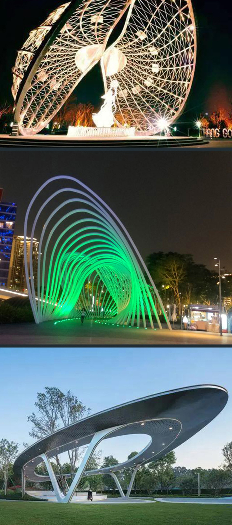 Пергола из нержавеющей стали, большая парковая беседка, архитектурная металлическая конструкция из стали, нерегулярная скульптура из стекловолокна