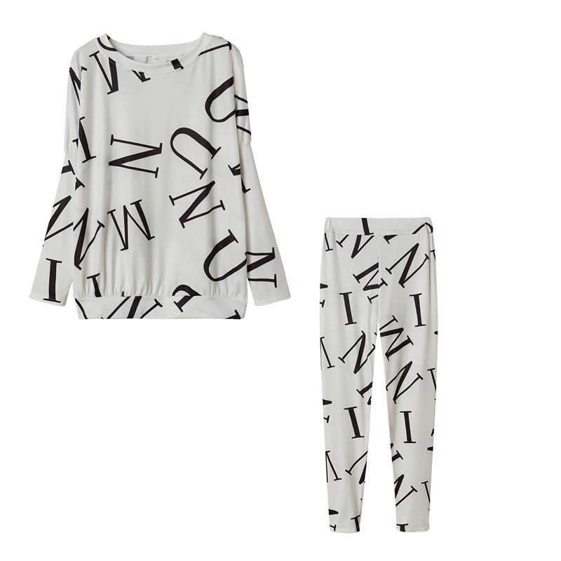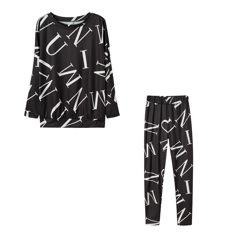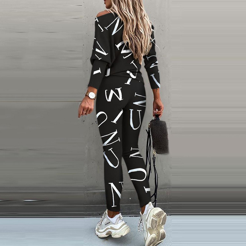 Осенний новый Amazon 2023 европейская и американская женская одежда с принтом с длинными рукавами брюки повседневный набор из двух частей женский
