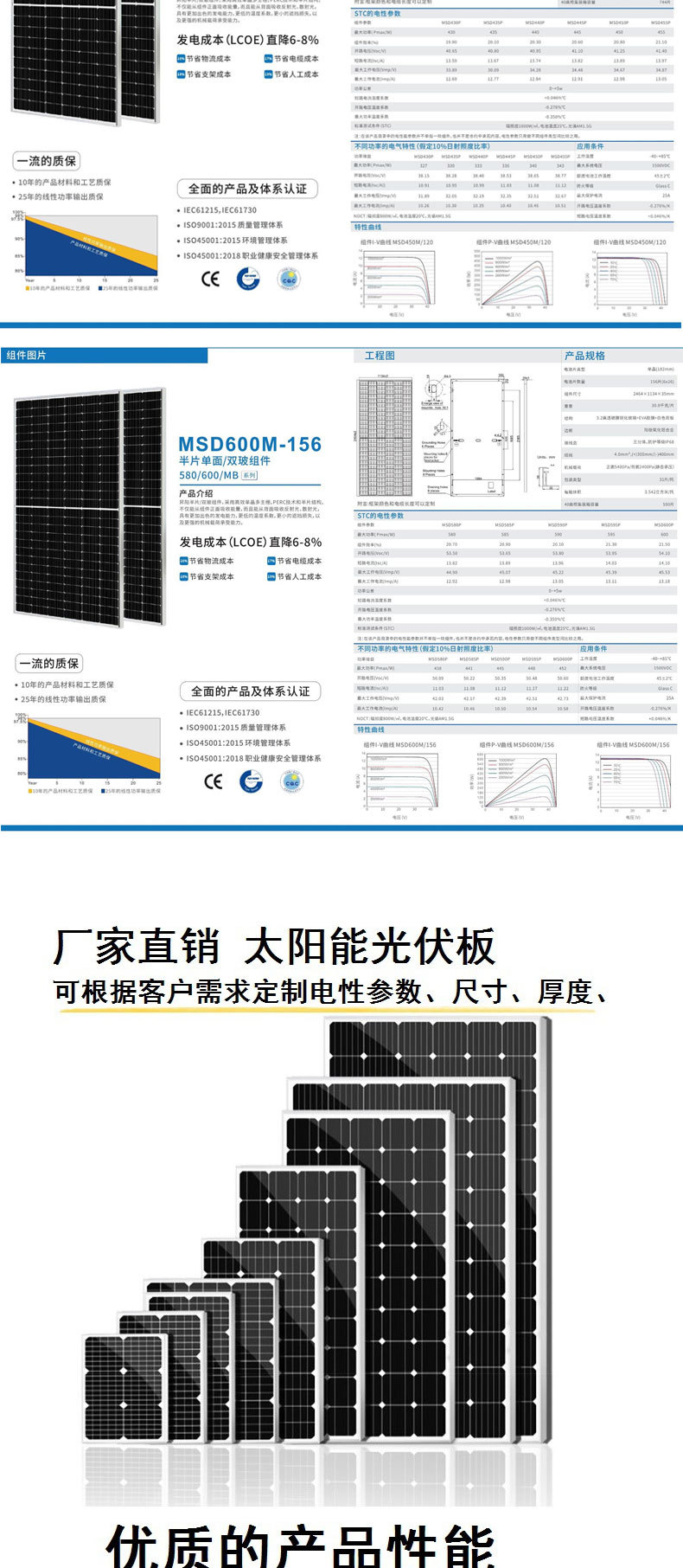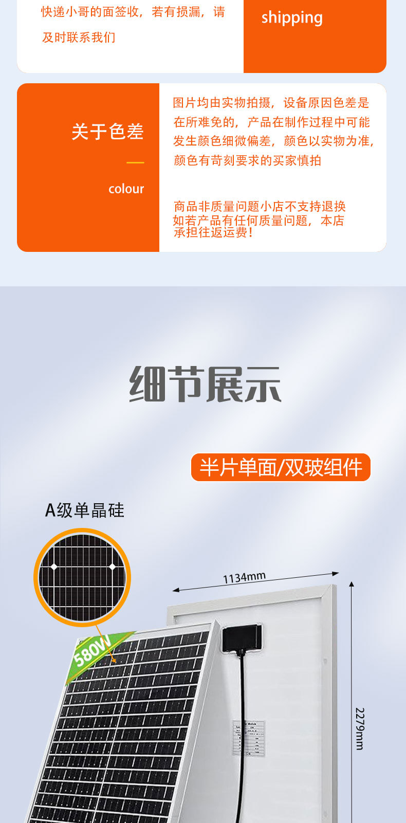 Солнечная панель из монокристаллического кремния мощностью 580 Вт, фотоэлектрическая панель, панель для выработки электроэнергии, солнечная батарея, эффективное производство электроэнергии