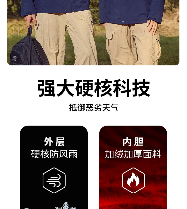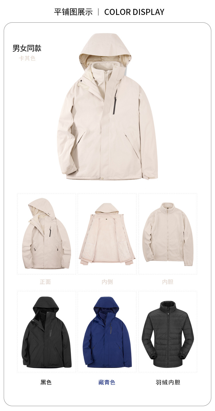 Уличная куртка для мужчин и женщин, куртка-трансформер 3-в-1 с отстегивающимся пуховым наполнителем, осенне-зимняя куртка фантомно-черного цвета для пар, одежда для альпинизма