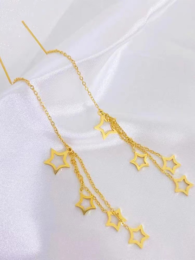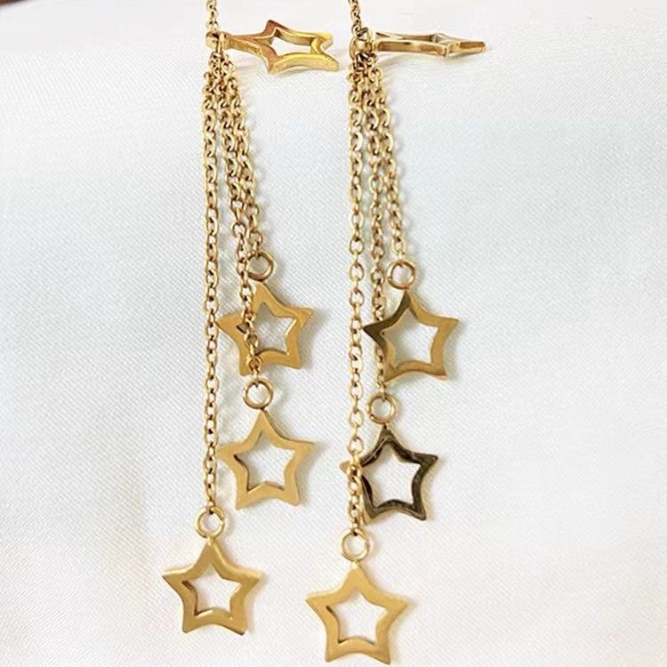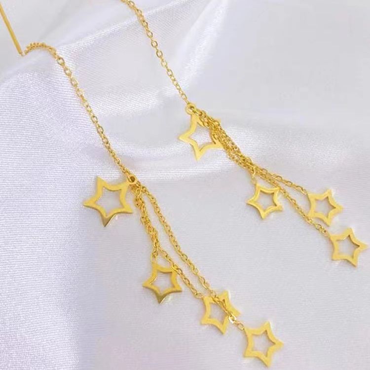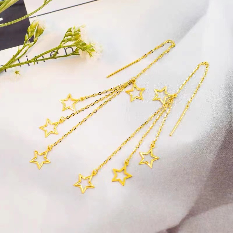 18-каратная Золотая звезда с кисточками для ушей, модные женские золотые серьги AU750, пятиконечная звезда, Новые Универсальные вне улицы