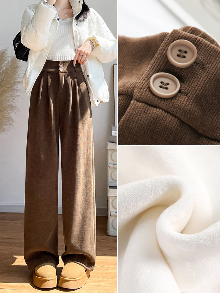 Женские брюки из синели на флисовой подкладке, широкие, осенне-зимняя новинка 2025 года, с высокой талией, драпированные, прямые, облегающие, для миниатюрных женщин.