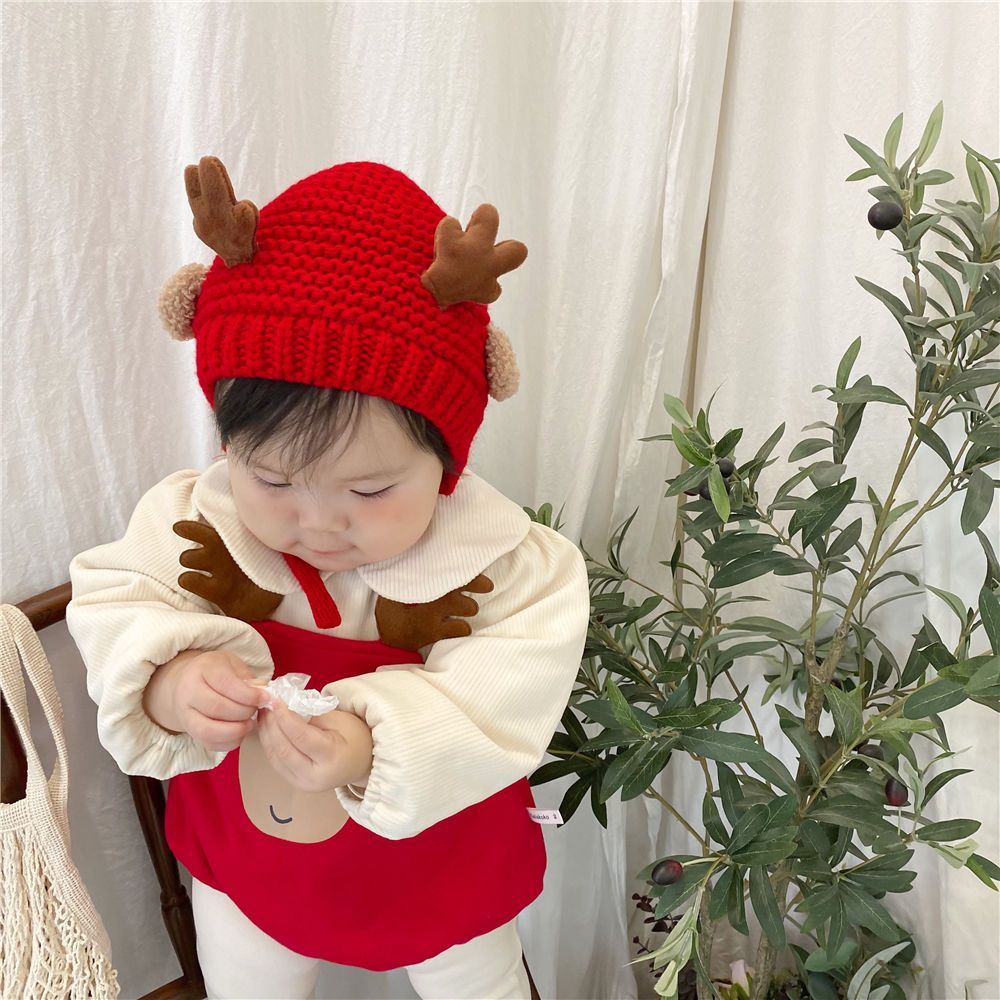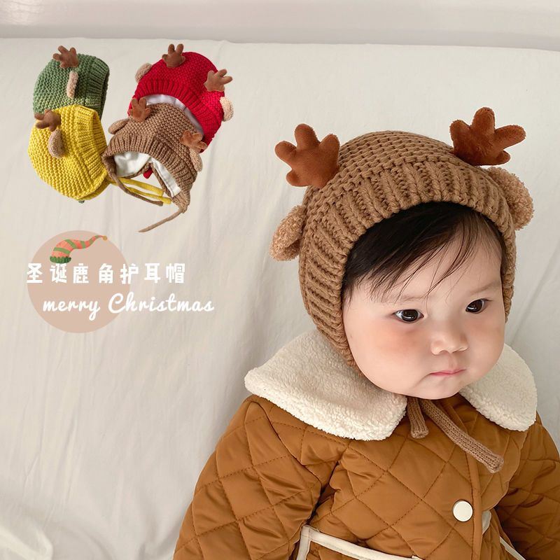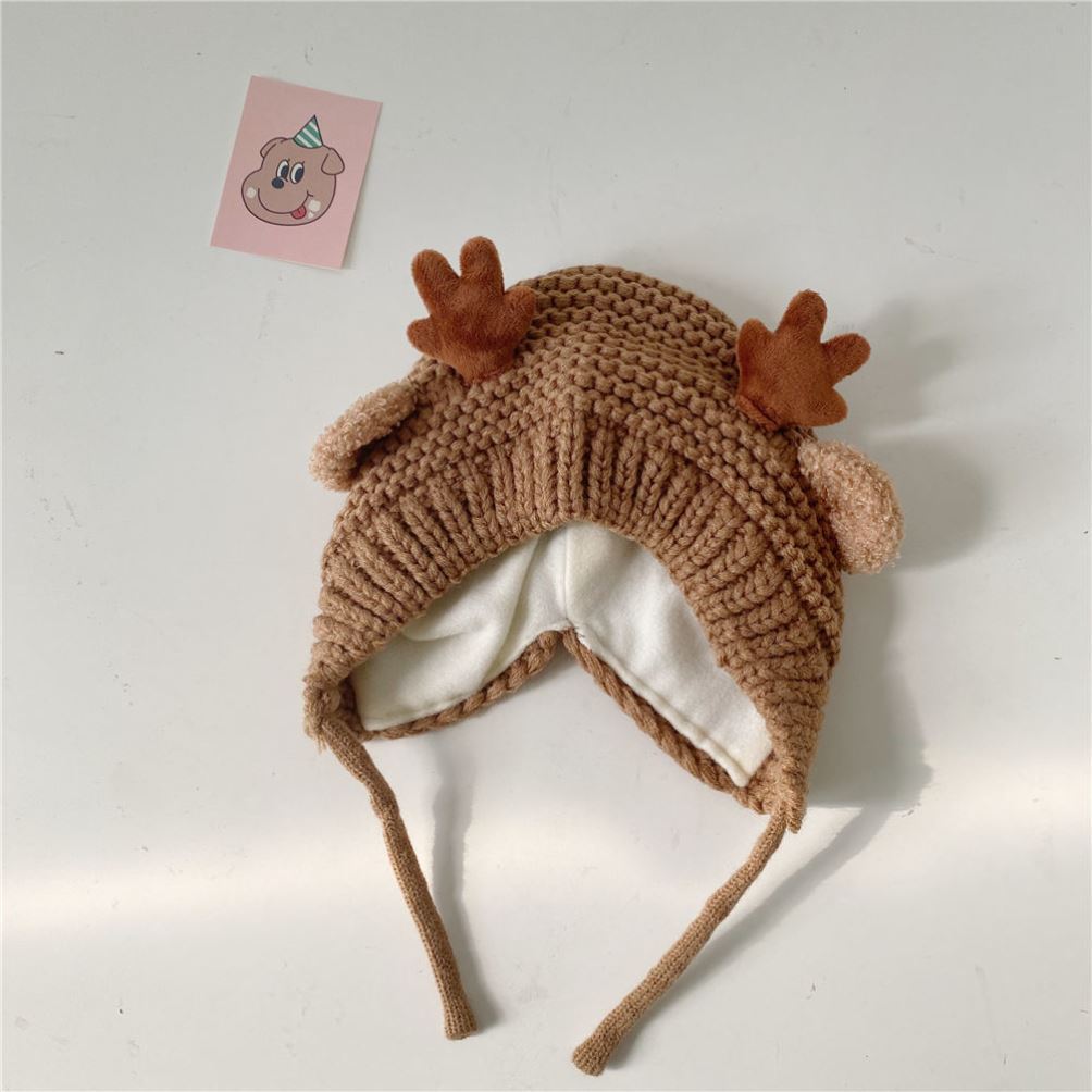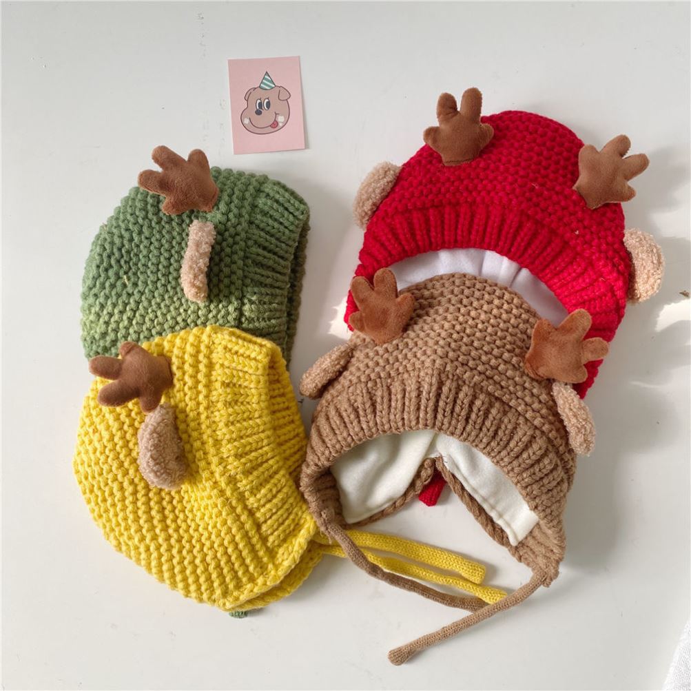 Детская шапка осень и зима Новая детская Милая шерстяная шапка рога Рождественская шапка детская мультяшная теплая шапка для защиты ушей