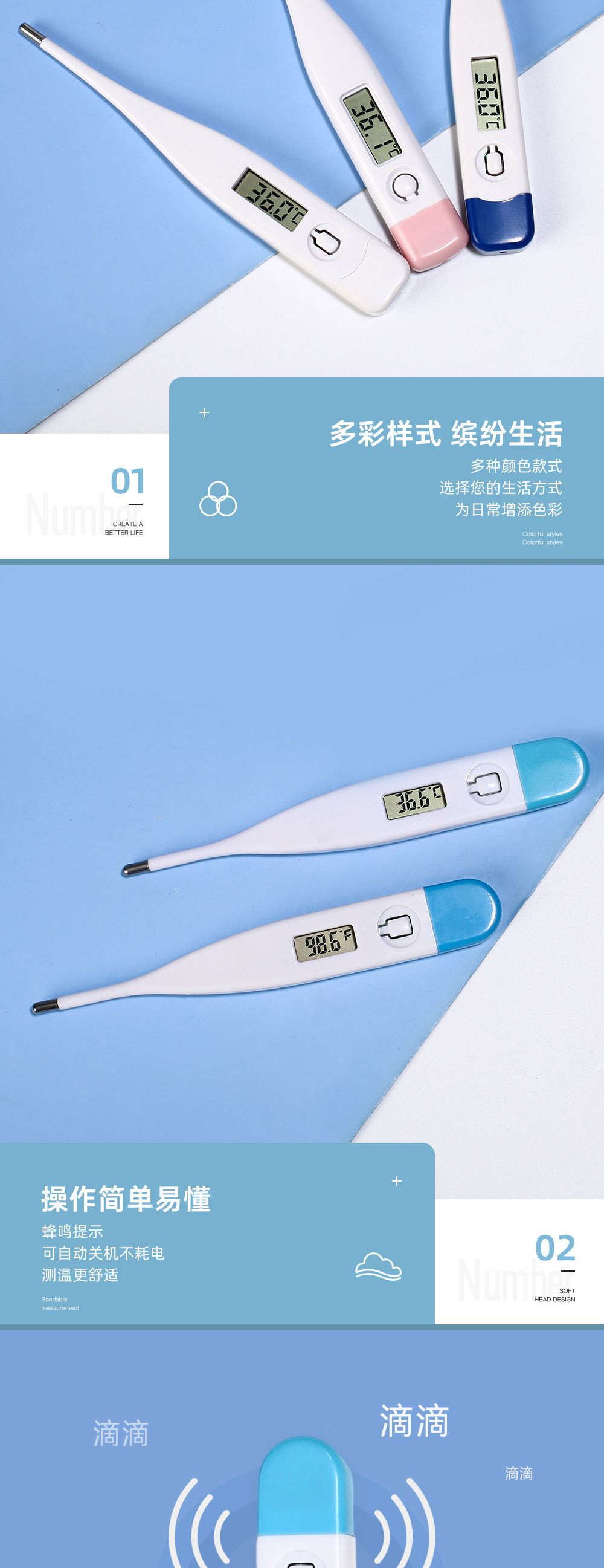 Электронный термометр для домашнего использования, подходящий для детей, взрослых и пожилых людей, цифровой медицинский термометр для измерения температуры подмышечной впадины с цифровым дисплеем.