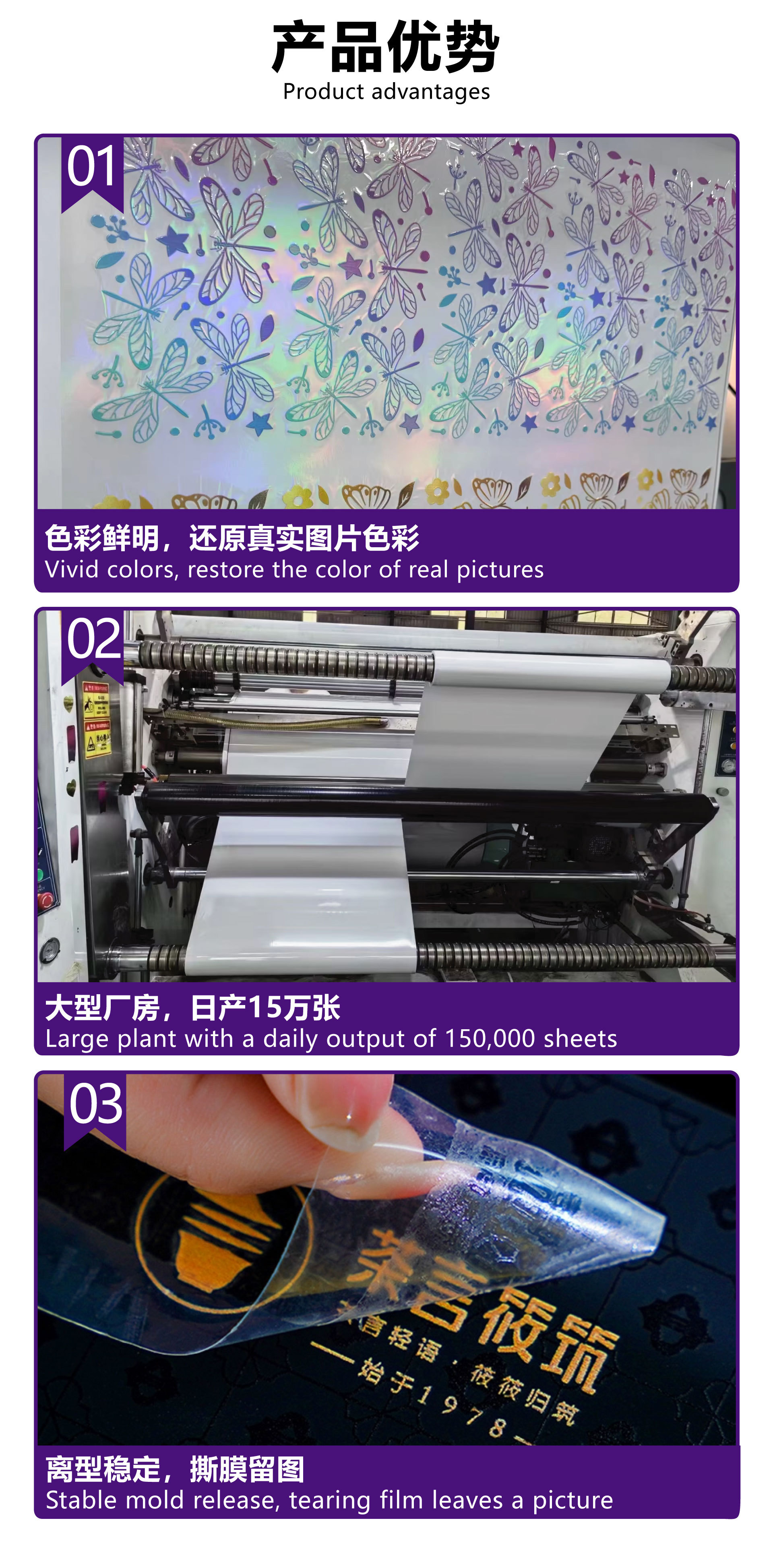 Hongcai горячего тиснения УФ Кристалл этикетки DTF Высокая липкая белая ТОЛСТАЯ НИЖНЯЯ холодная передача AB пленка хорошая слеза хорошая наклейка фабрика