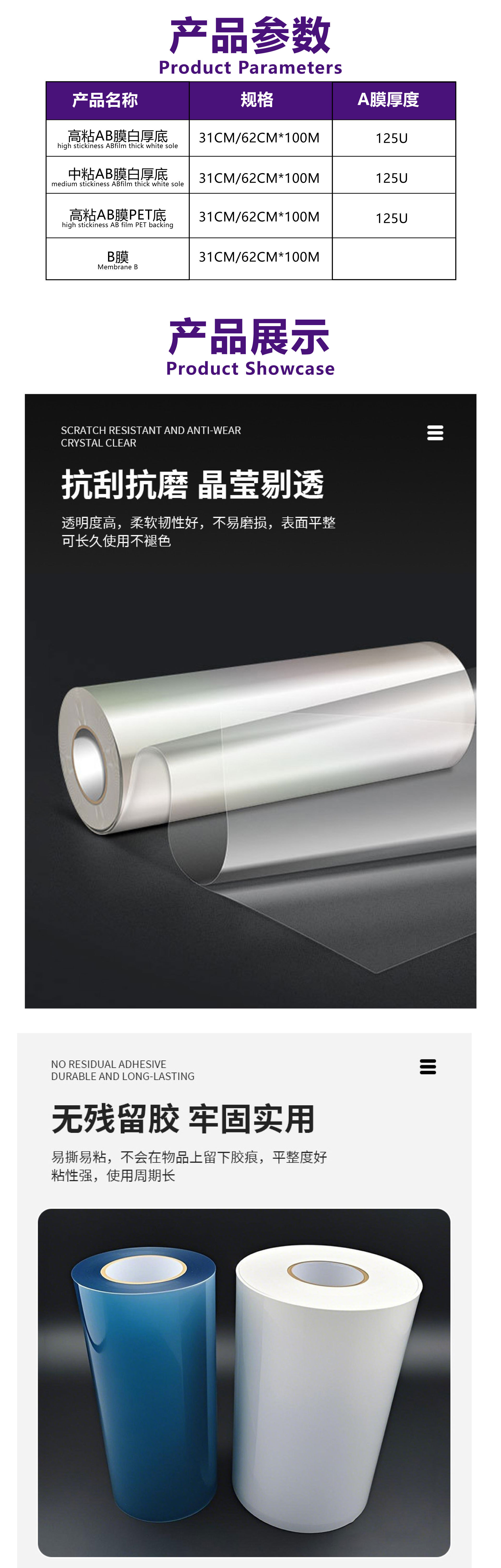 Высокая липкая белая Толстая Нижняя пленка Crystal AB 0,2 квадрата; Высокая вязкость белого толстого дна холодной передачи пленки AB 0,5 квадратных; Высокая вязкость белый толстым дном холодной передачи фильм AB 1 квадрат; Высокая вязкость белый толстый нижний холодной передачи AB Фильм лист набор