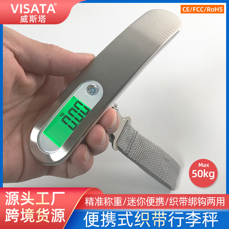 威斯塔VISATA电子织带行李秤 便携式手提秤 迷你钓鱼秤 小型买菜秤 50kg公斤秤 不锈钢电子秤 礼品秤 绑带挂钩秤 航空箱包秤 快递秤 邮包秤 源头工厂 现货批发 支持LOGO贴牌定制