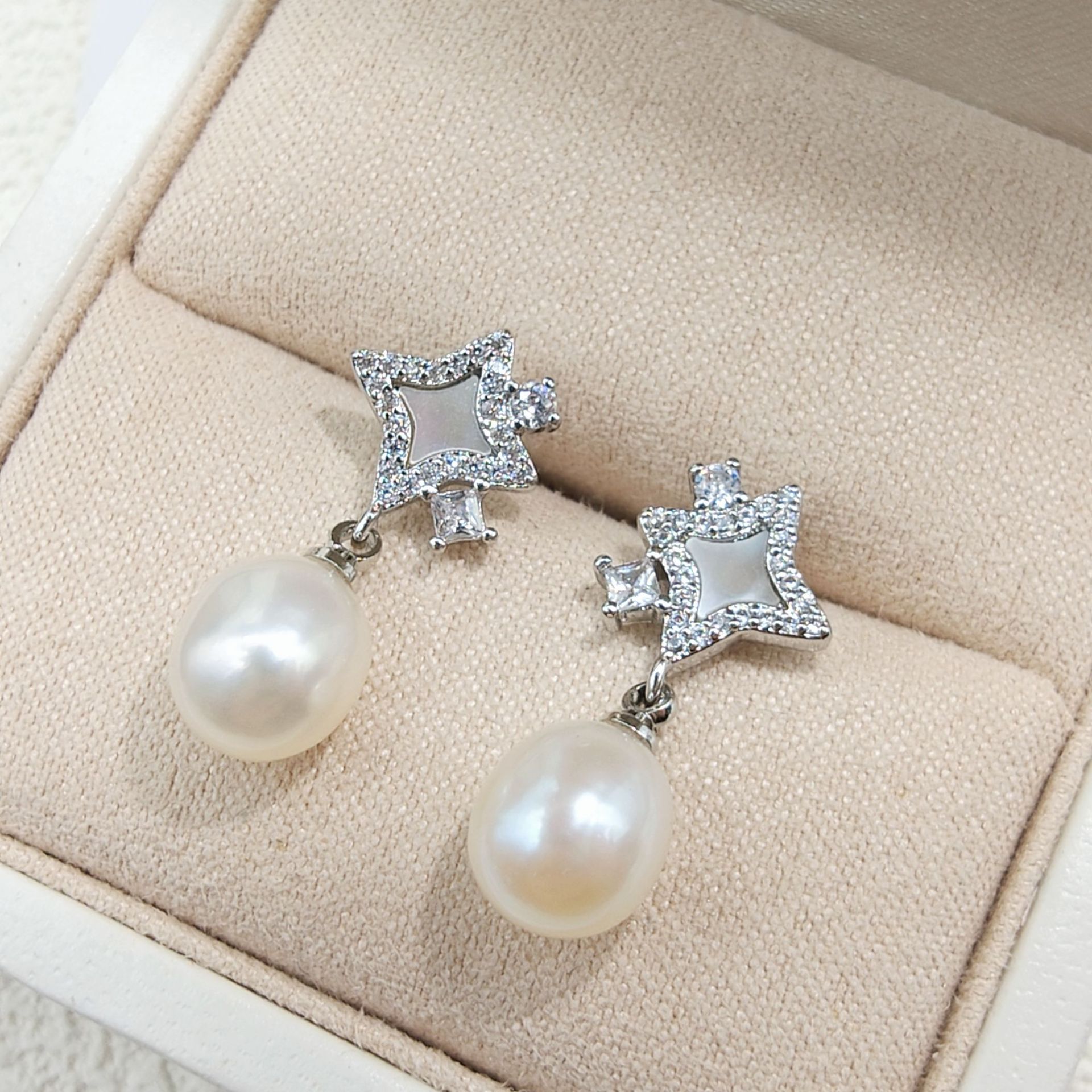925-игольчатый серебряный модный корейский ретро настоящий жемчуг циркон серьги