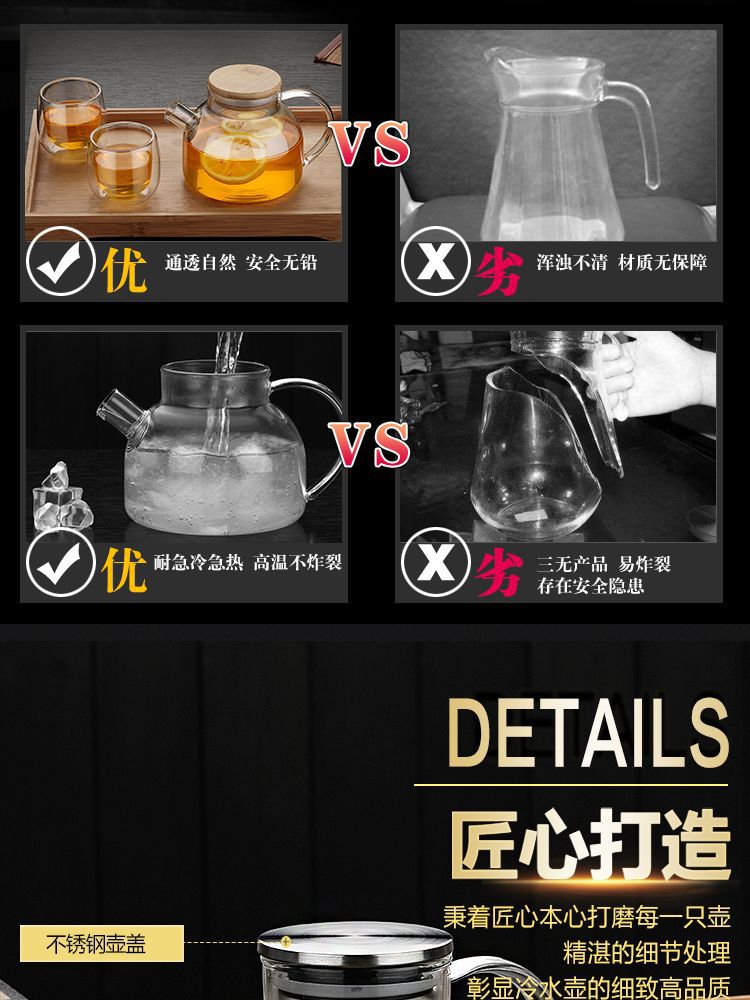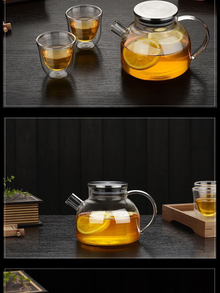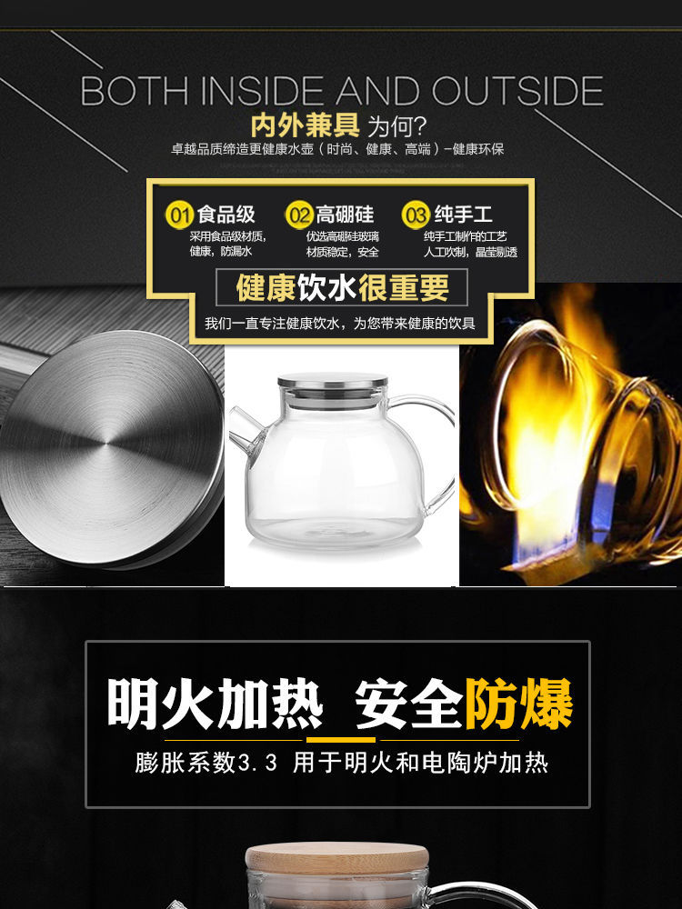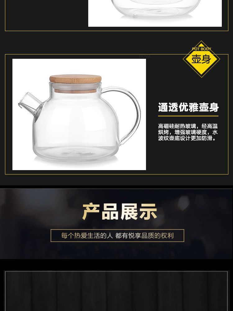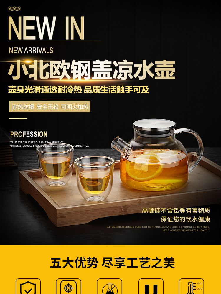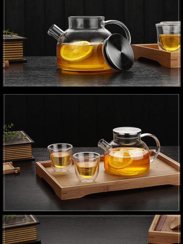 Чайник из боросиликатного стекла Бамбуковая крышка Чайник для холодной воды Бытовой чайник для холодной воды Цветочный чайник Прозрачный фруктовый горшок