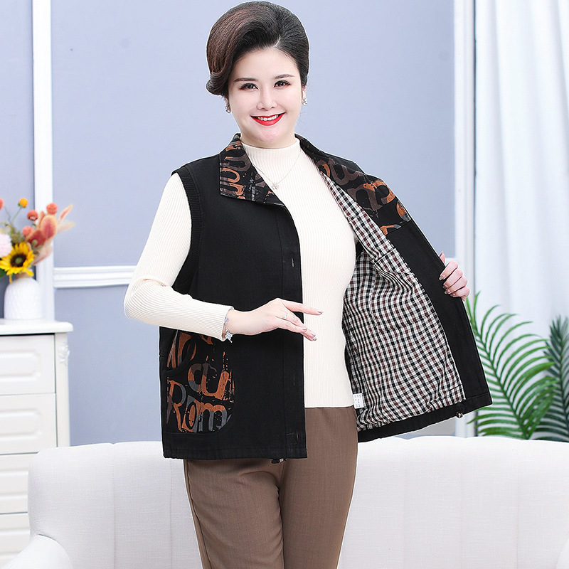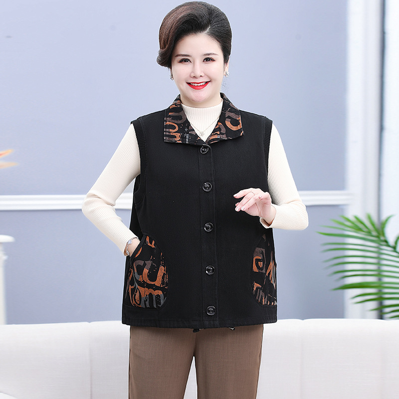 Весенний и Осенний жилет для женщин среднего и пожилого возраста плюс толстый джинсовый кардиган больших размеров, жилет для бабушки, Свободный жилет для толстой мамы