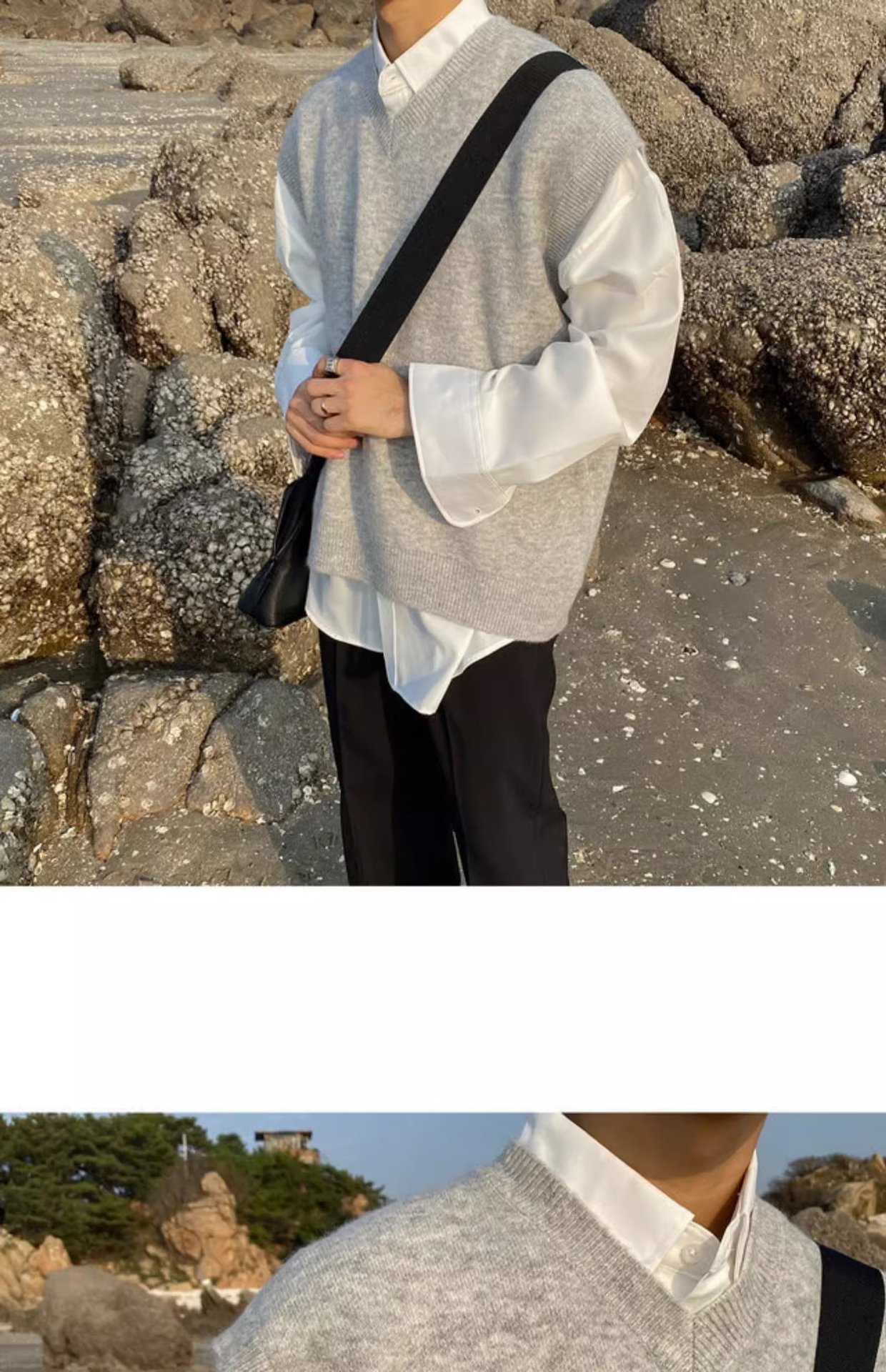 Свитер взрывы 2023 новый осенний модный бренд с V-образным вырезом жилет без рукавов мужской Осенний жилет вязаный свитер