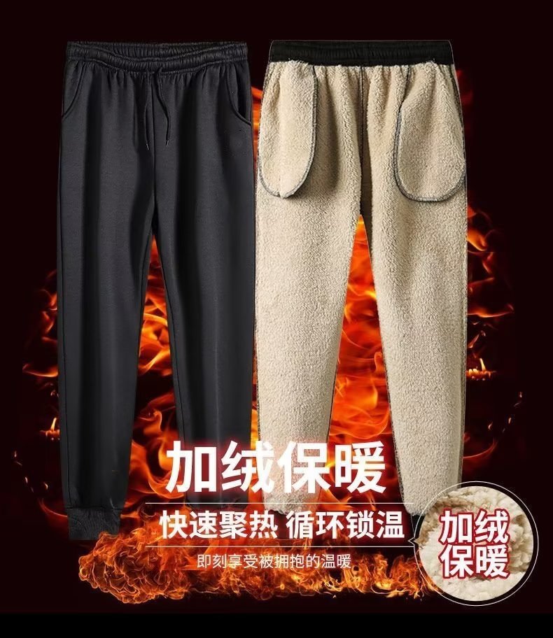 Плюшевые толстые зимние кашемировые брюки мужские 320 г имитация хлопчатобумажных пучков Корейская версия больших размеров теплые спортивные брюки для отдыха