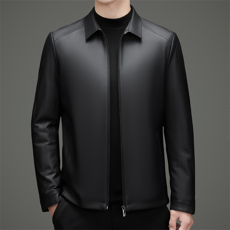 Мужская деловая повседневная кожаная куртка из овечьей кожи Haining среднего возраста, мужская кожаная куртка с лацканами, мужской кожаный пуховик, пальто