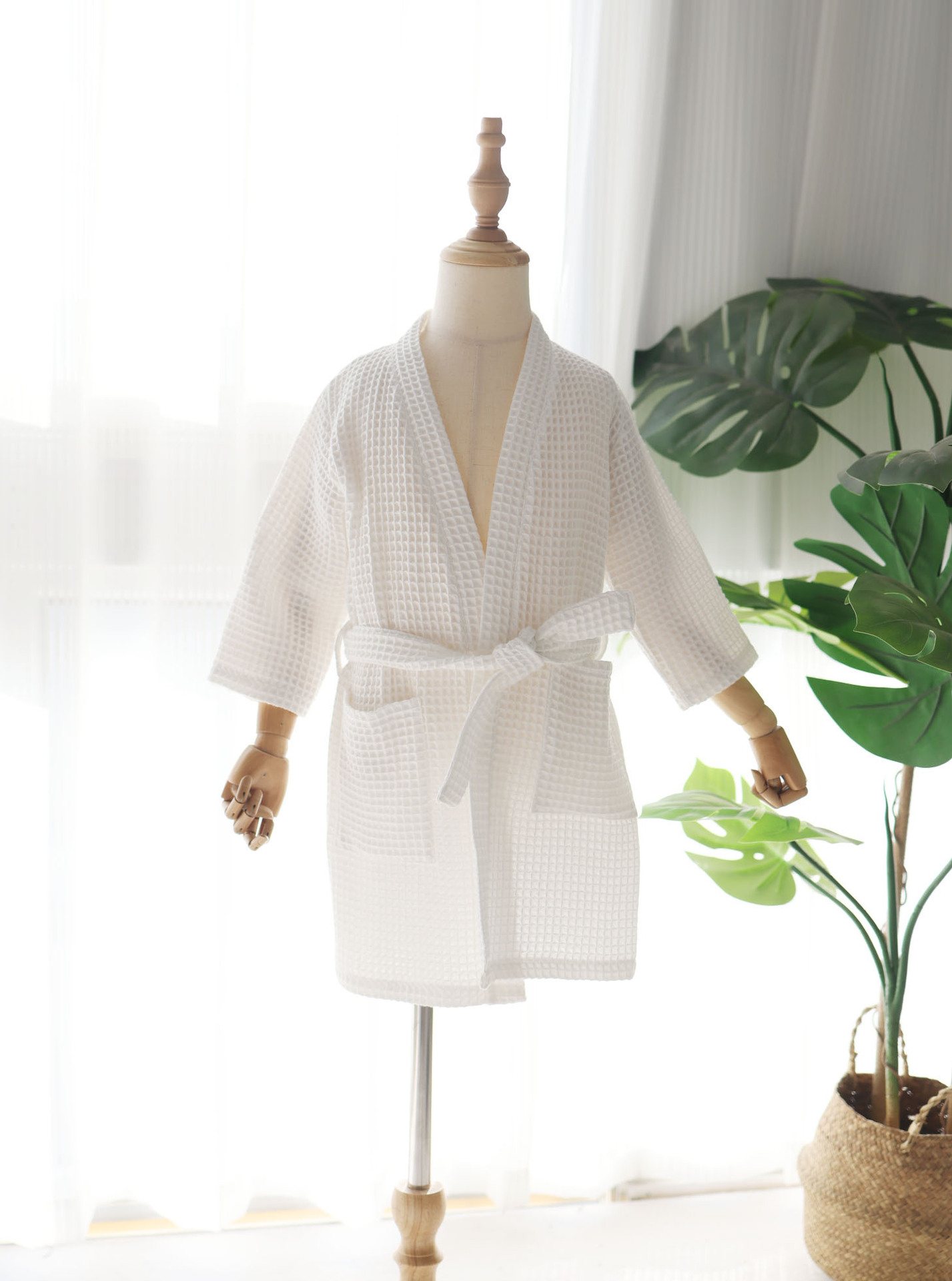 Хлопковый детский халат Тонкий вафельный впитывающий купальный халат Пижама с капюшоном для маленьких мальчиков и девочек
