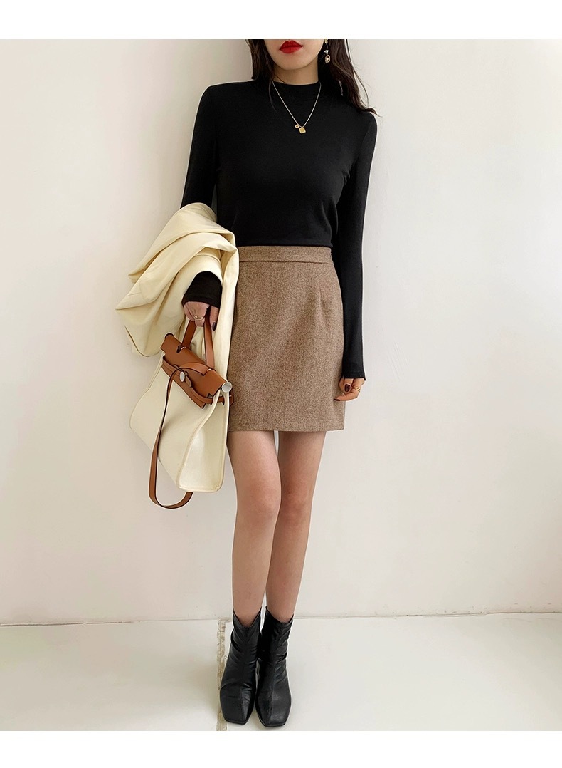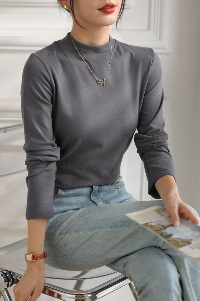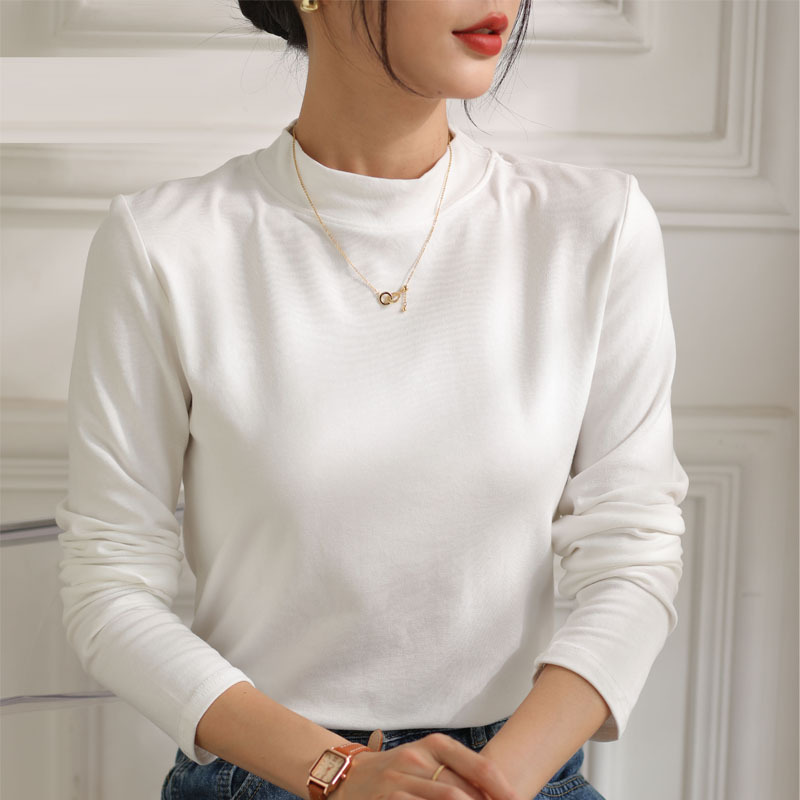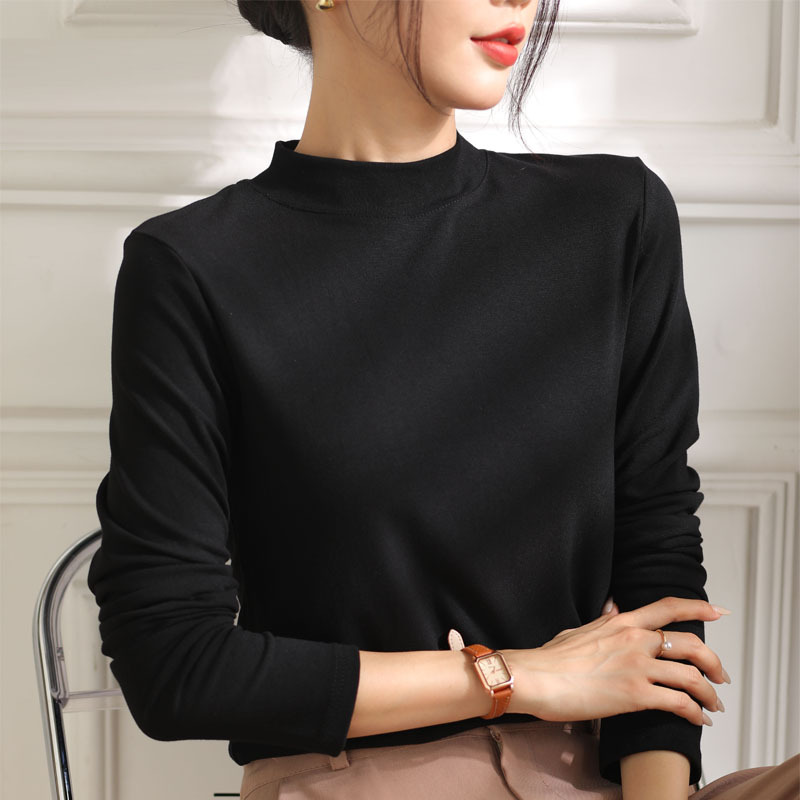 Осенняя и зимняя 2024 рубашка с полувысоким воротником нижняя рубашка с длинными рукавами футболка сплошной темперамент