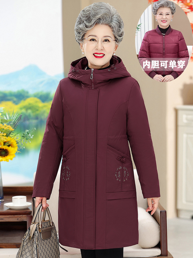 Новый живой пуховик среднего и пожилого возраста женский средний и длинный размер мама pike одежда зимняя бабушка толстая куртка