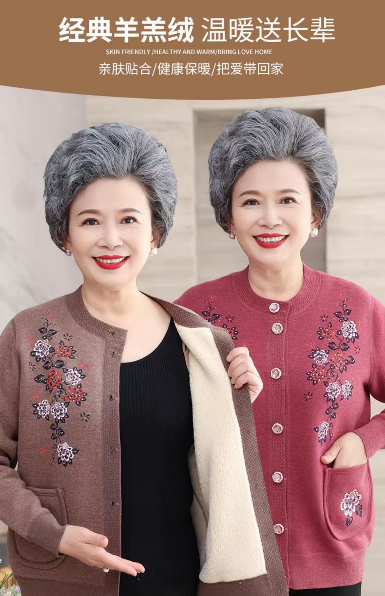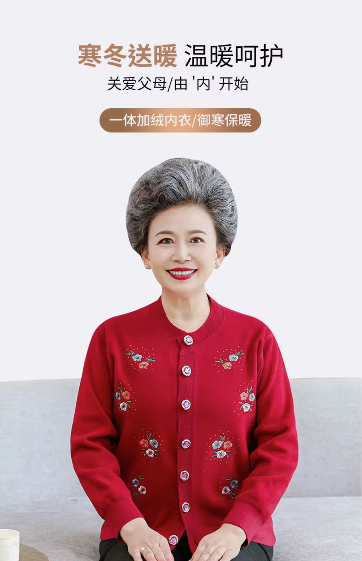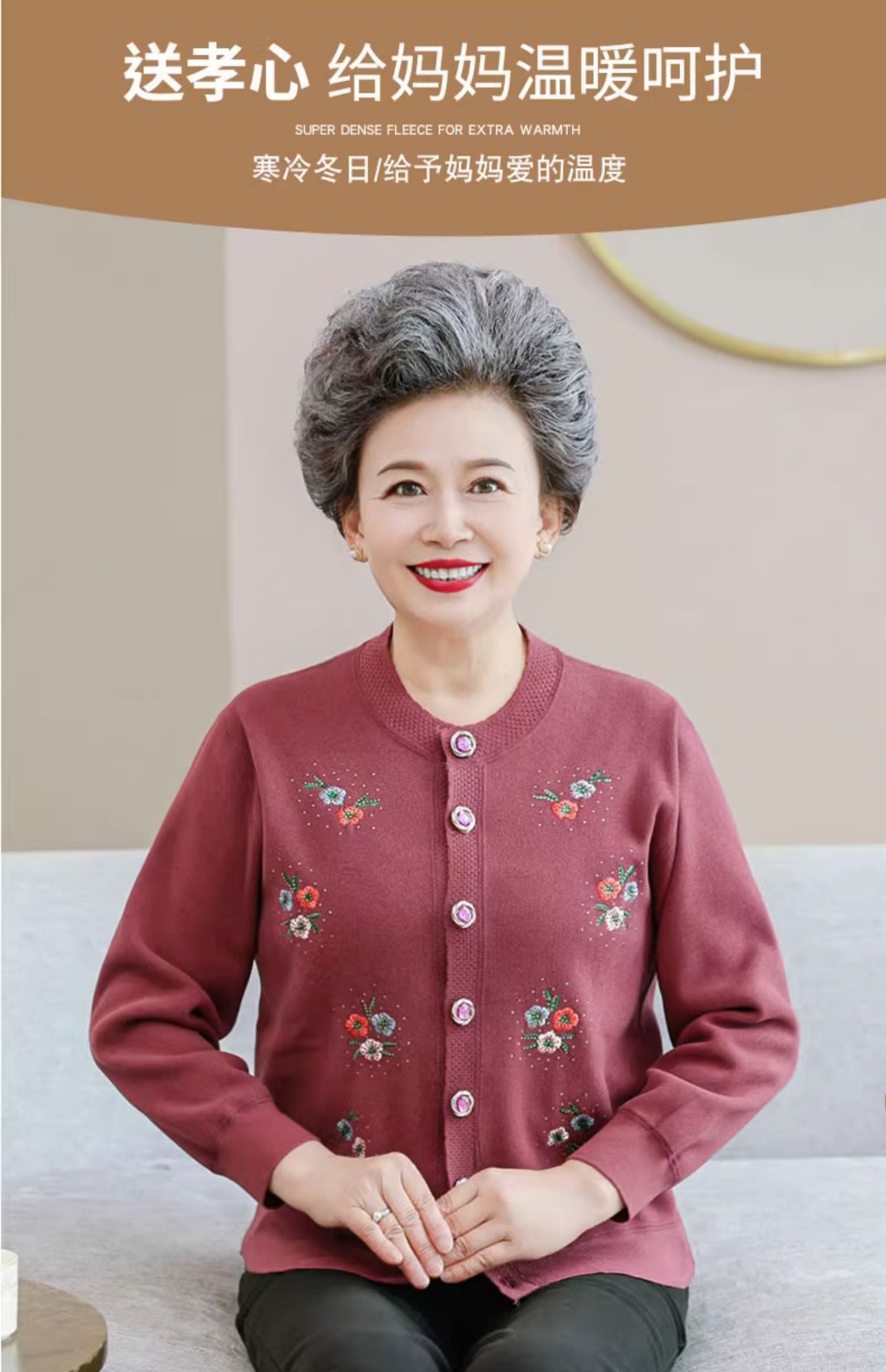 Кардиган для пожилых людей, термобелье, Женская Утепленная зимняя теплая одежда для мам на флисовой подкладке, цельный Топ для женщин среднего и пожилого возраста