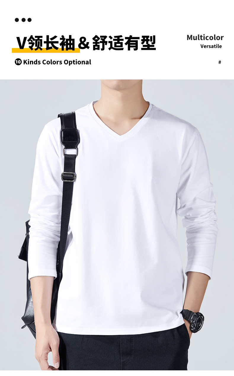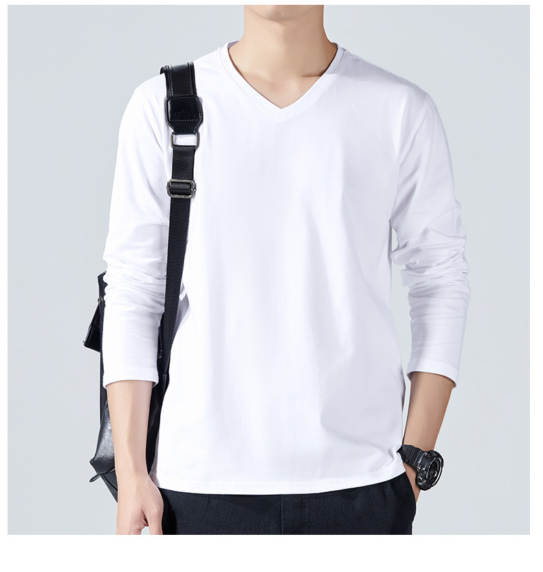 Мужская Осенняя Базовая рубашка больших размеров ins, однотонная тонкая свободная хлопковая Футболка с V-образным вырезом и длинными рукавами, оптовая продажа с фабрики
