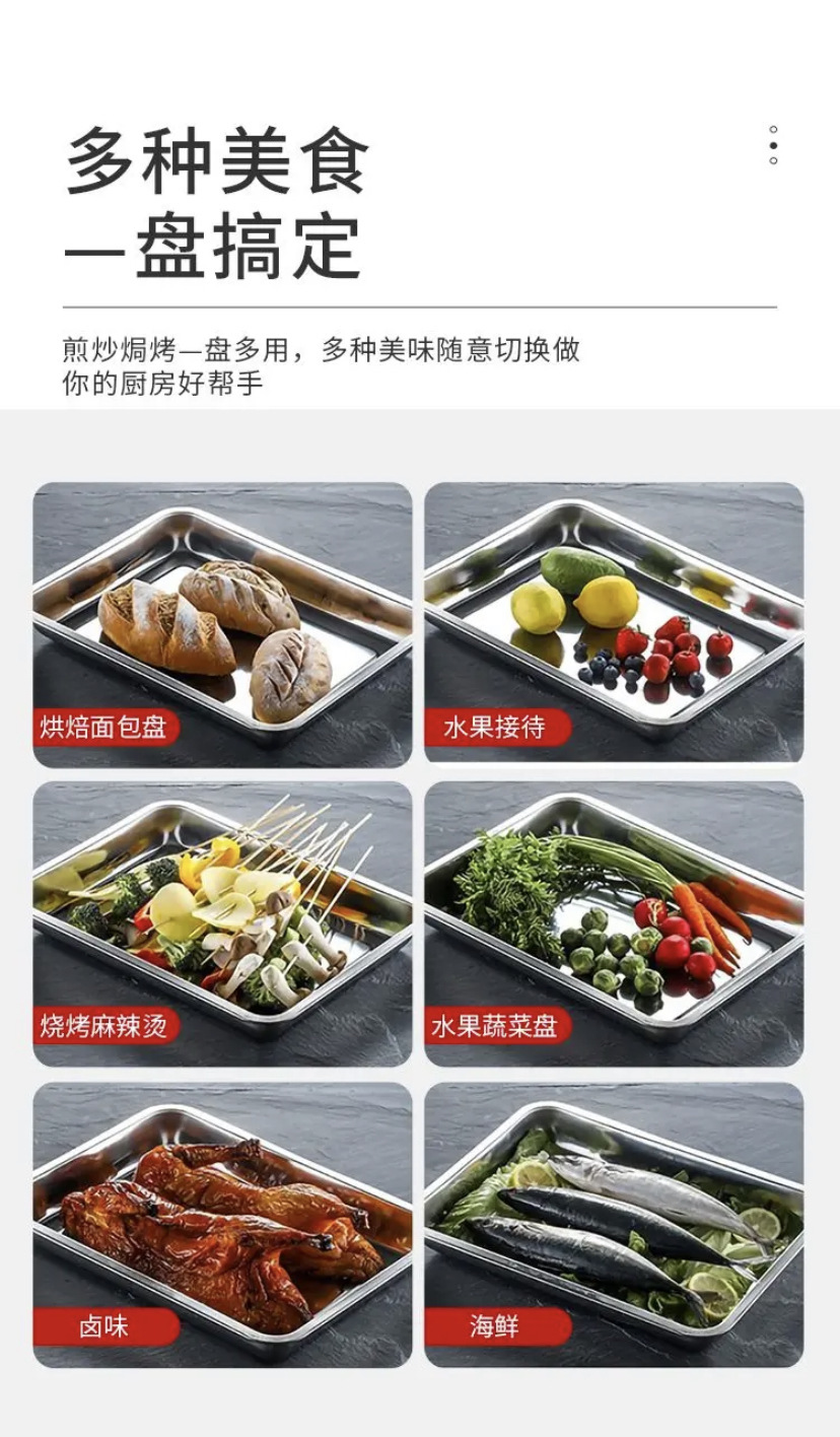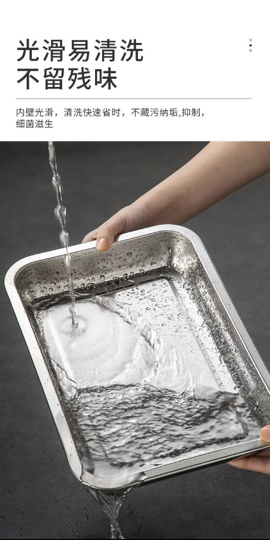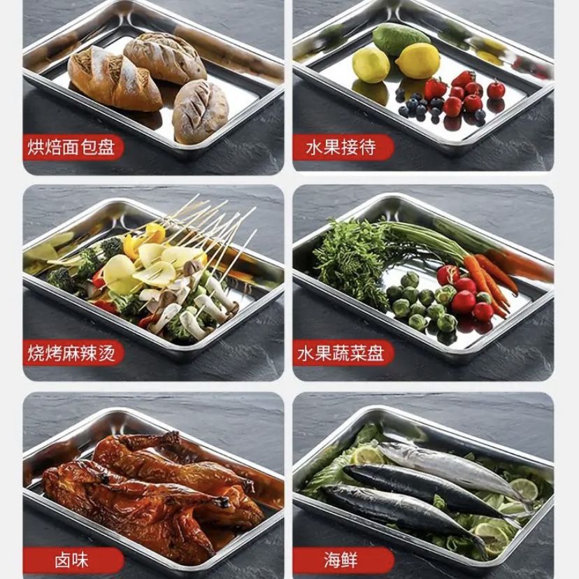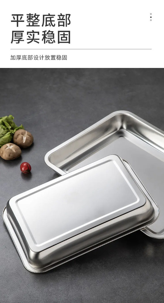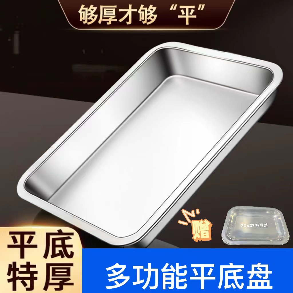 Утолщенная квадратная пластина из нержавеющей стали Холодные блюда Кухонный герметичный лоток Противень из нержавеющей стали Коммерческая плита для шведского стола с плоским дном