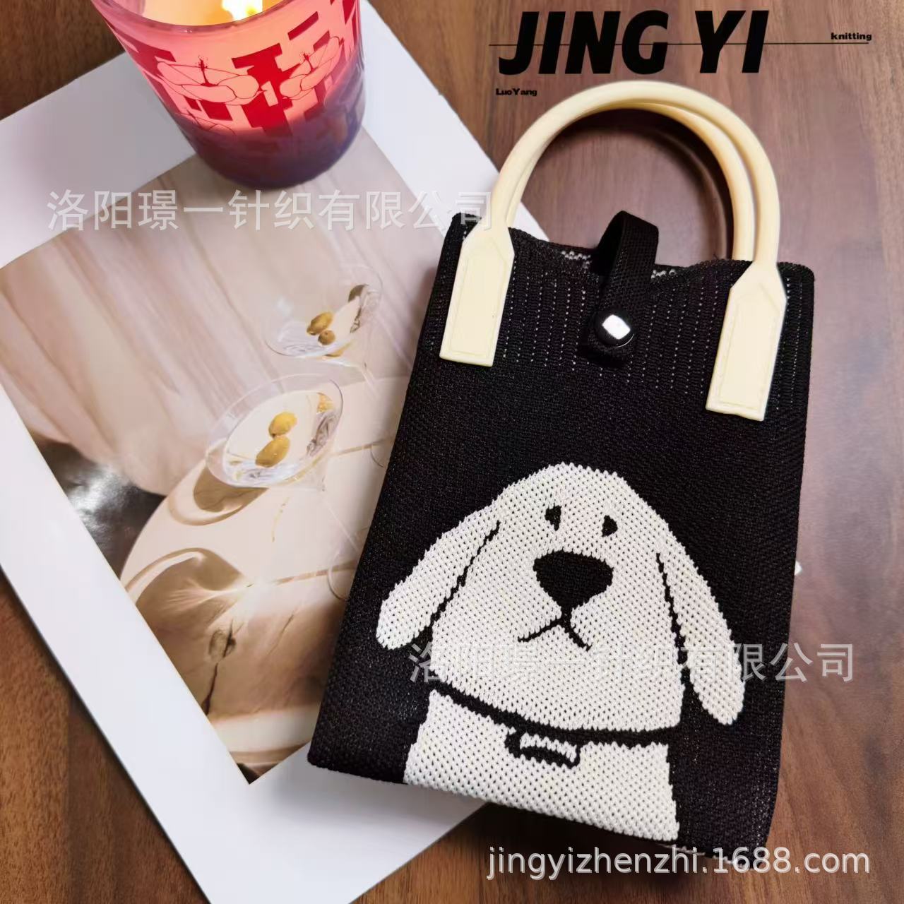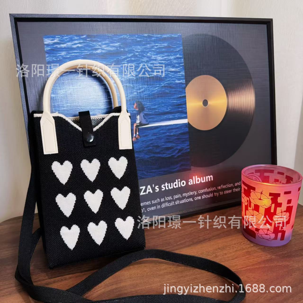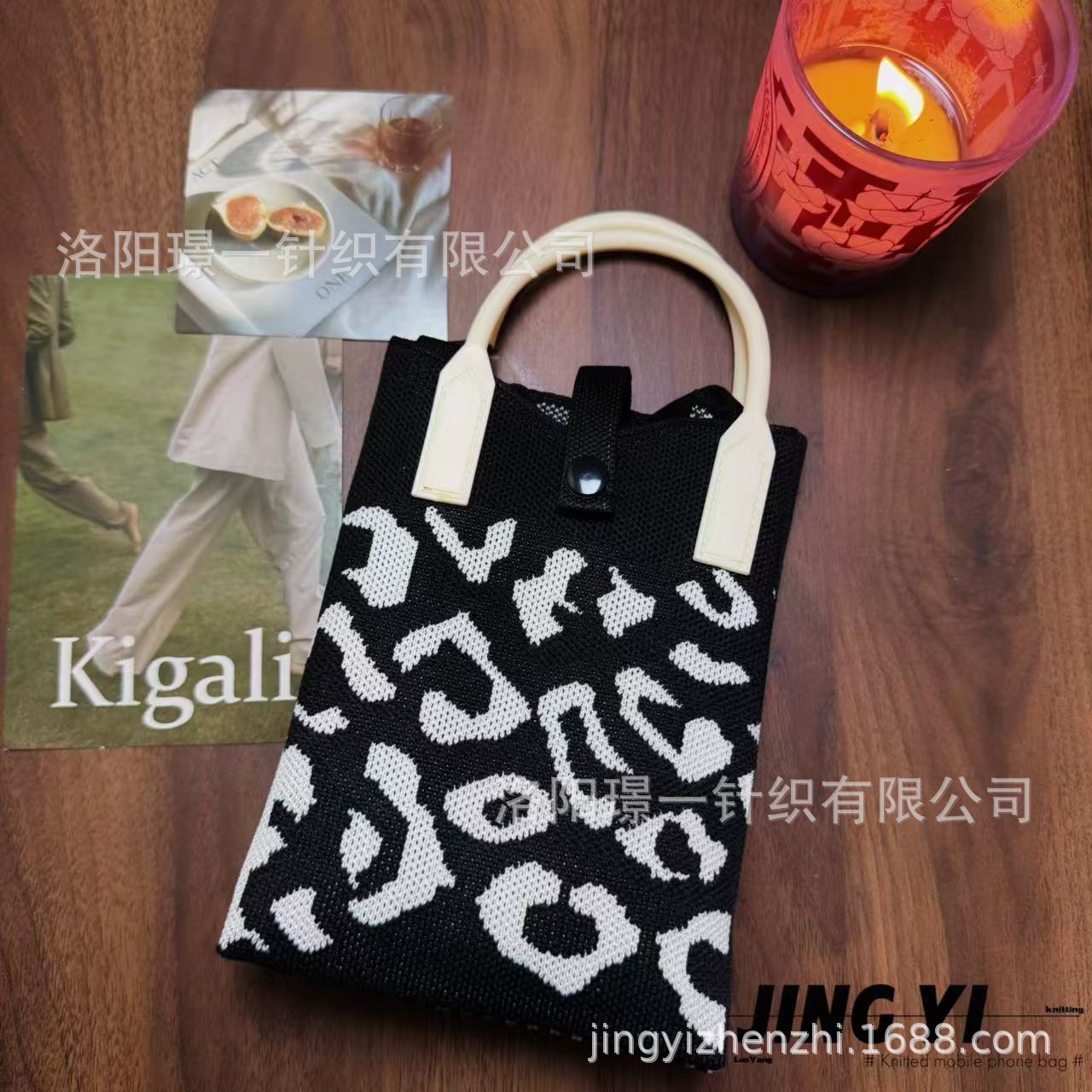 Миниатюрная вязаная сумка для телефона, новинка осени-зимы 2025, черно-белая сумка через плечо с леопардовым принтом для женщин, универсальная портативная сумка для мелочи, маленькая квадратная сумка.