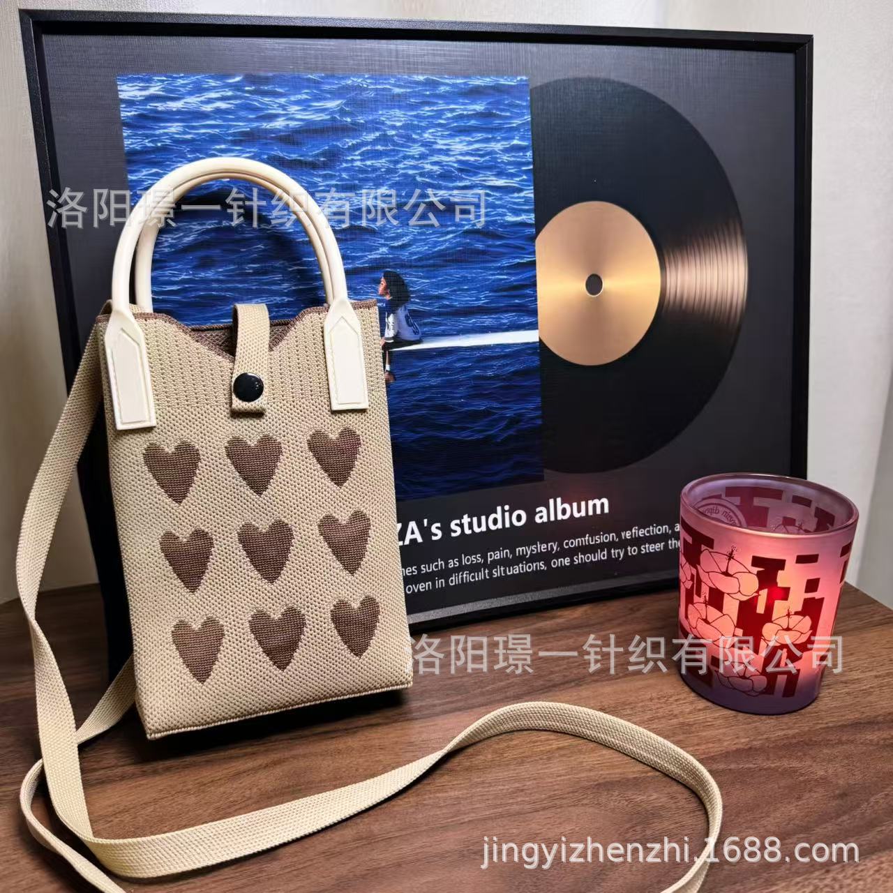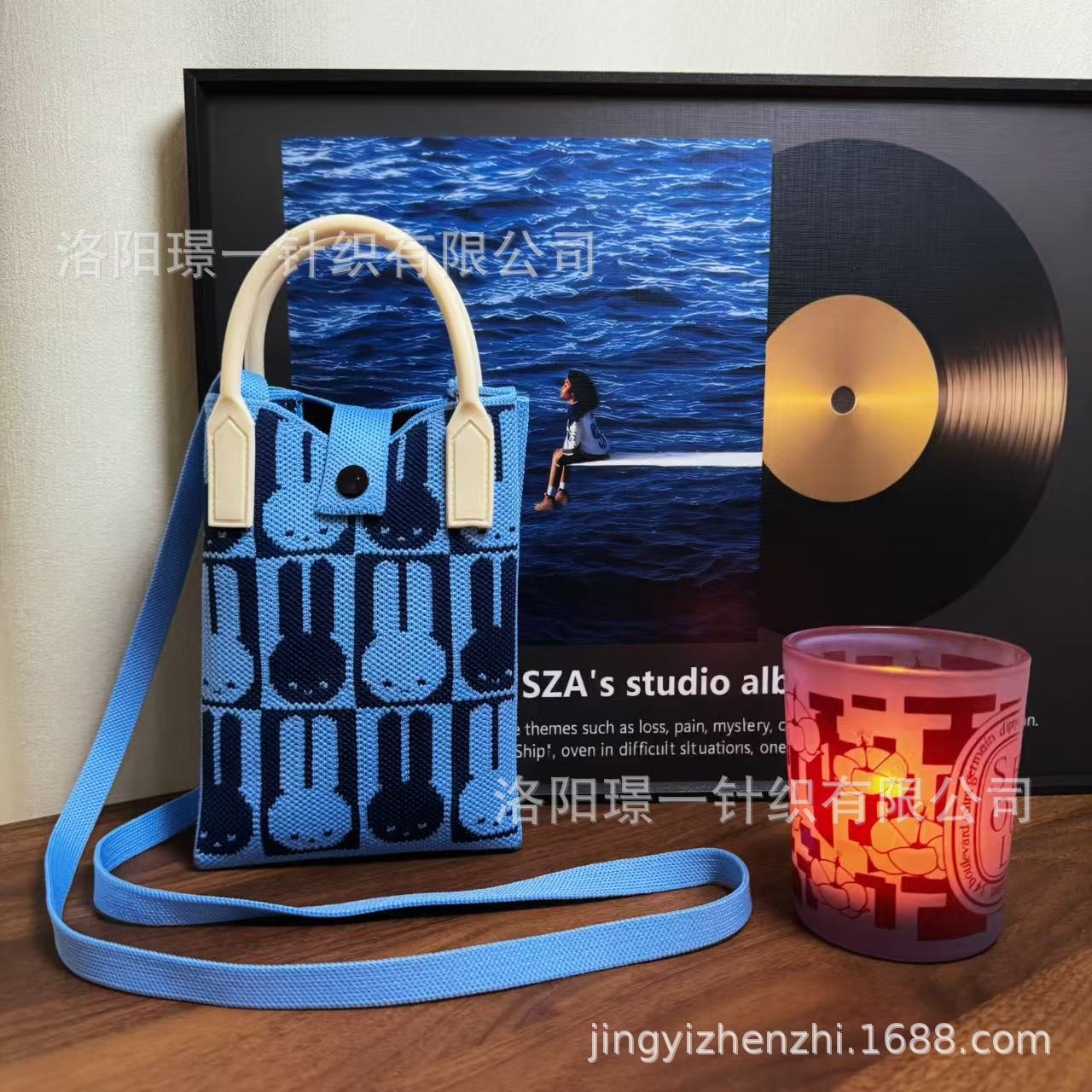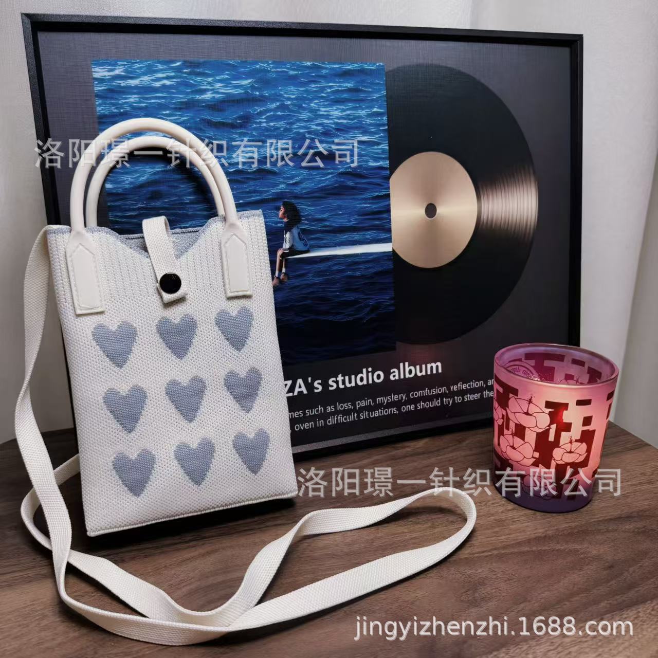 Миниатюрная вязаная сумка для телефона, новинка осени-зимы 2025, черно-белая сумка через плечо с леопардовым принтом для женщин, универсальная портативная сумка для мелочи, маленькая квадратная сумка.