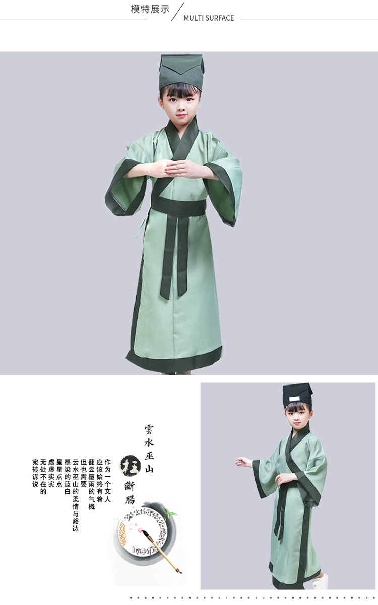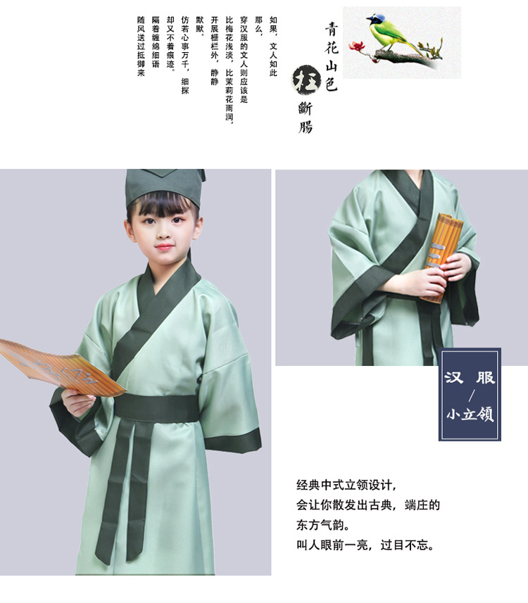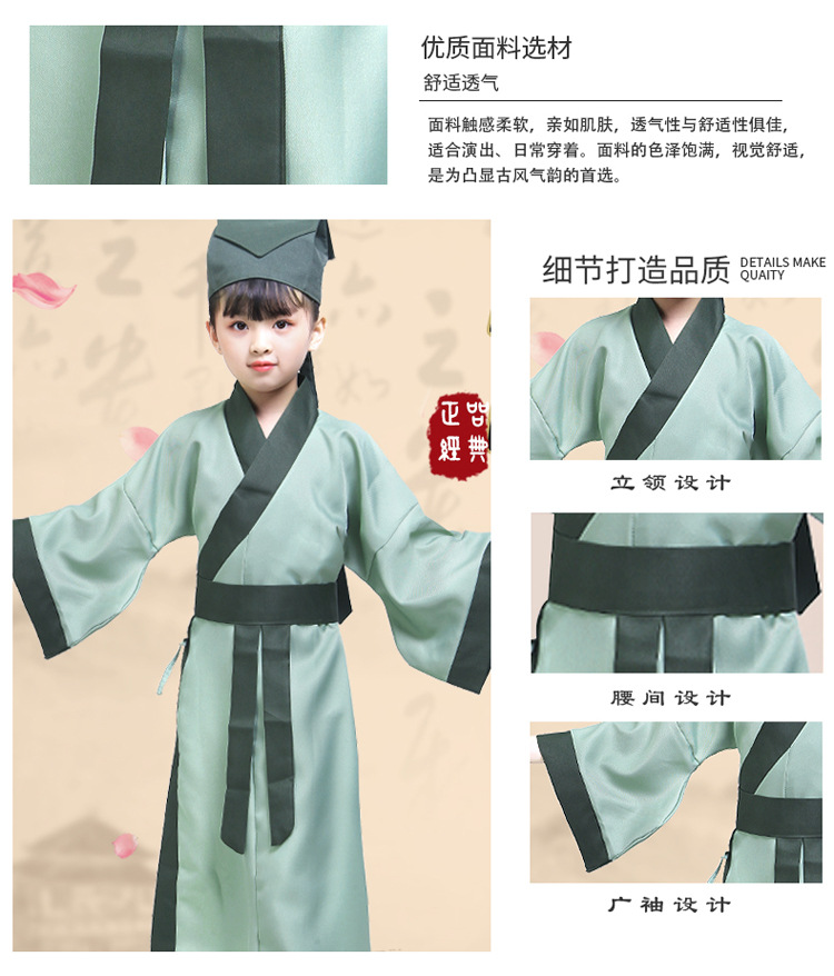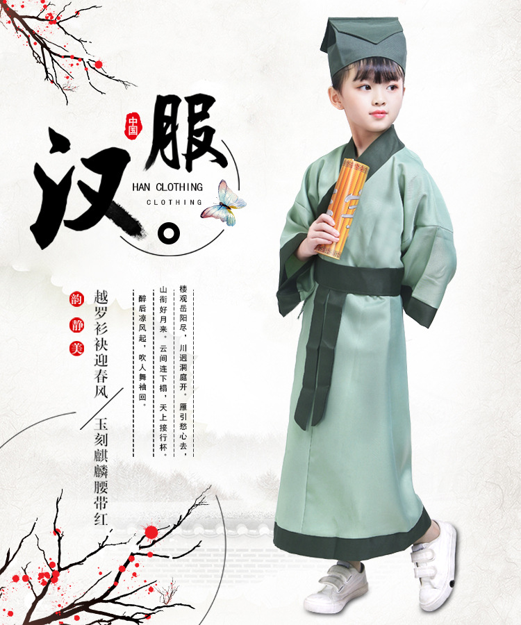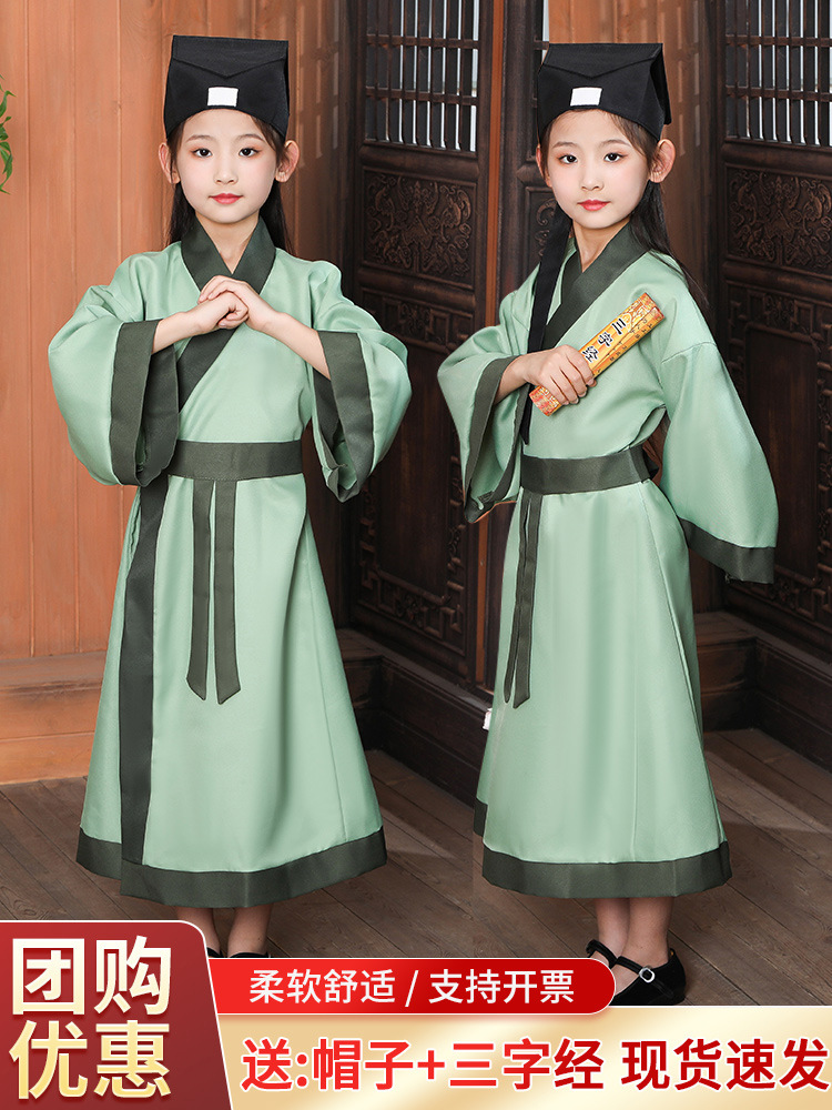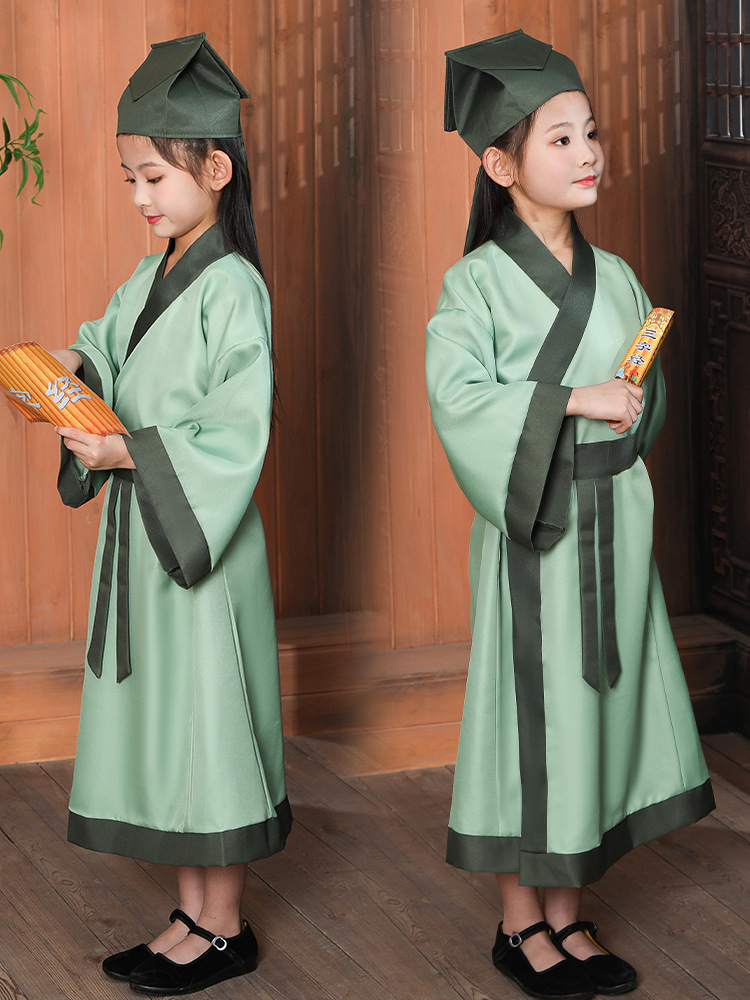 Детский древний костюм ханьфу, китайская одежда, девочка, трехперсональная сутра, китайский стиль, школьная книга, школьник, детские часы, костюм для выступлений