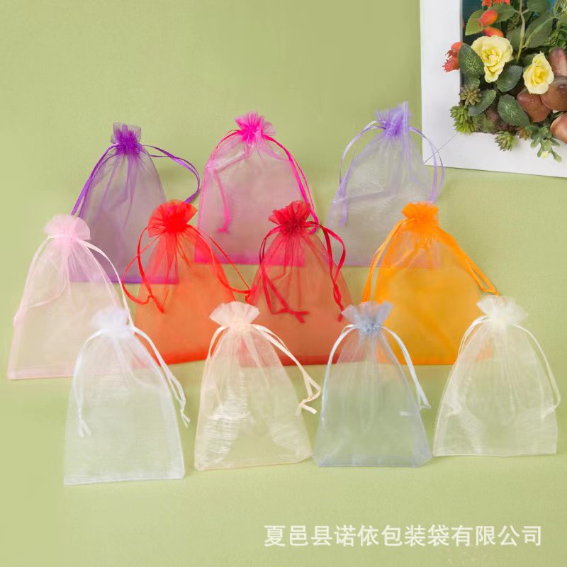 В наличии Оптовая шнурок органзы мешок конфеты карман мешок сетки для печати логотипа подарочной упаковки мешок сетки