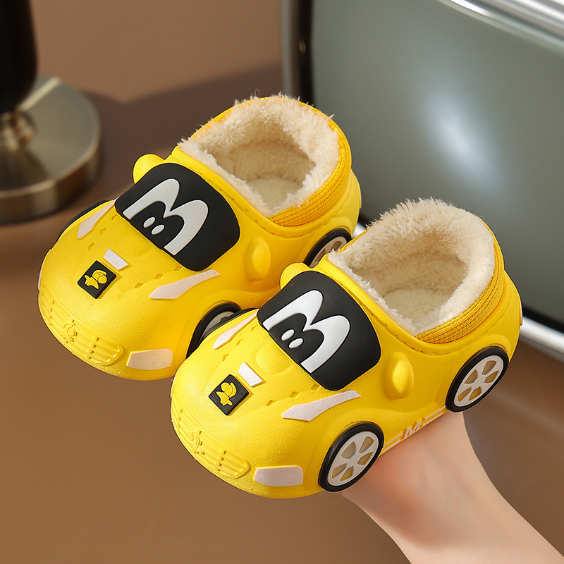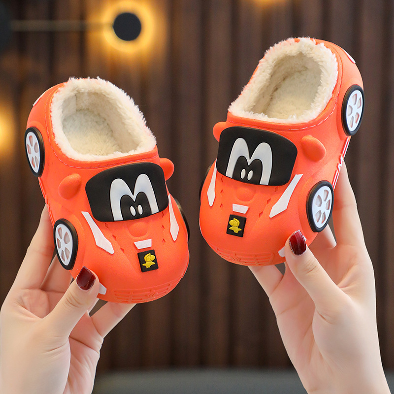 Зимние Детские хлопковые тапочки для мальчиков и девочек, непромокаемые милые домашние Нескользящие Теплые сумки с мягкой подошвой на флисовой подкладке и хлопковыми тапочками