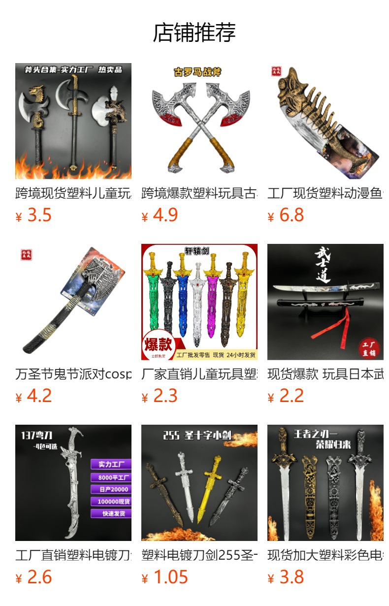 专业生产出口刀剑玩具20年,自主生产设计塑料仿真刀剑、木制玩具刀剑,有海盗系列、万圣节系列、中世纪骑士系列、日本武士刀系列、日本动漫系列、化妆舞会系列等刀、剑、盾牌相关产品,产品款式几百款,专业值得信赖。