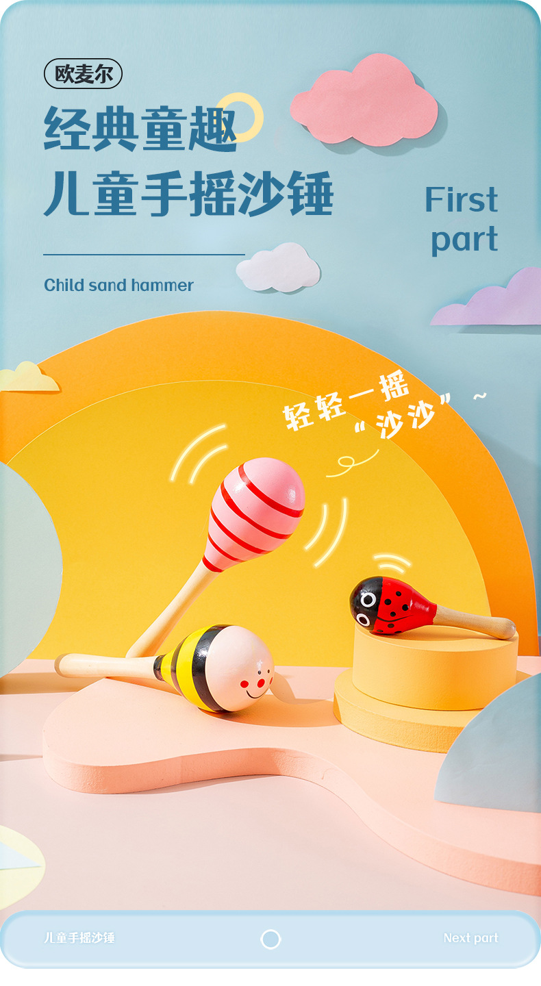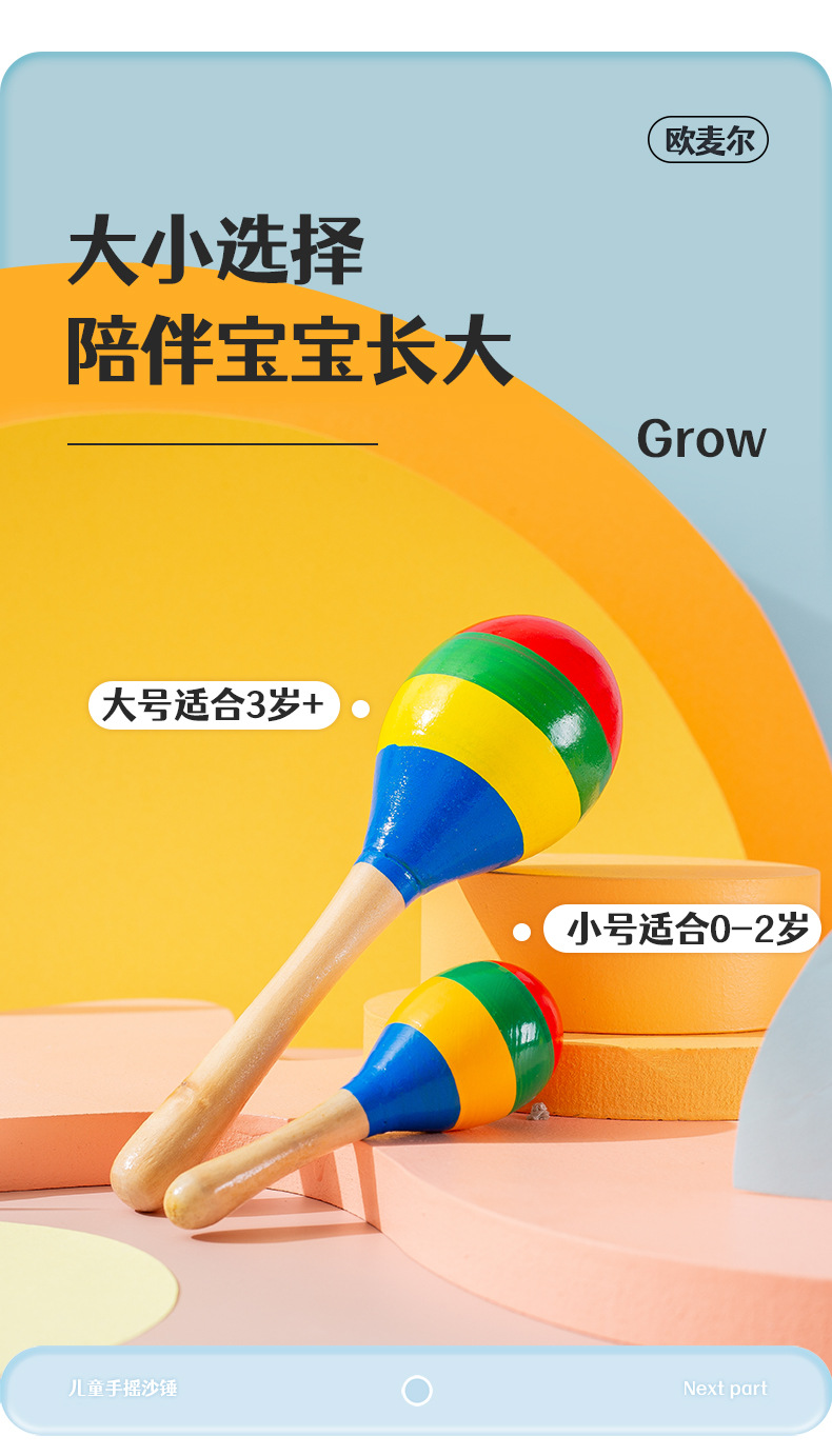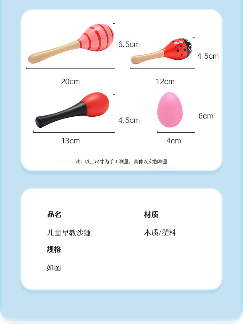 Младенческий песочный молоток Песочное яйцо Следующее за новорожденным Орф Ударный инструмент Деревянный песочный молоток Детский музыкальный инструмент для раннего развития